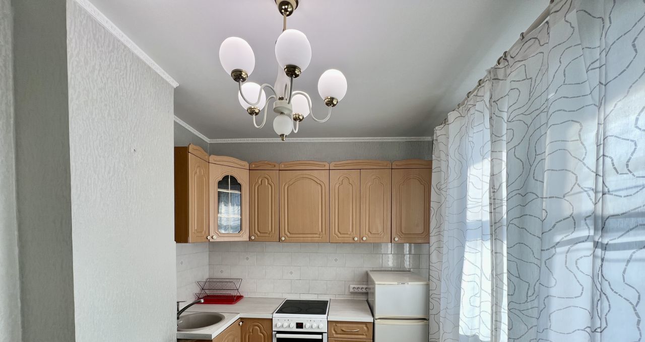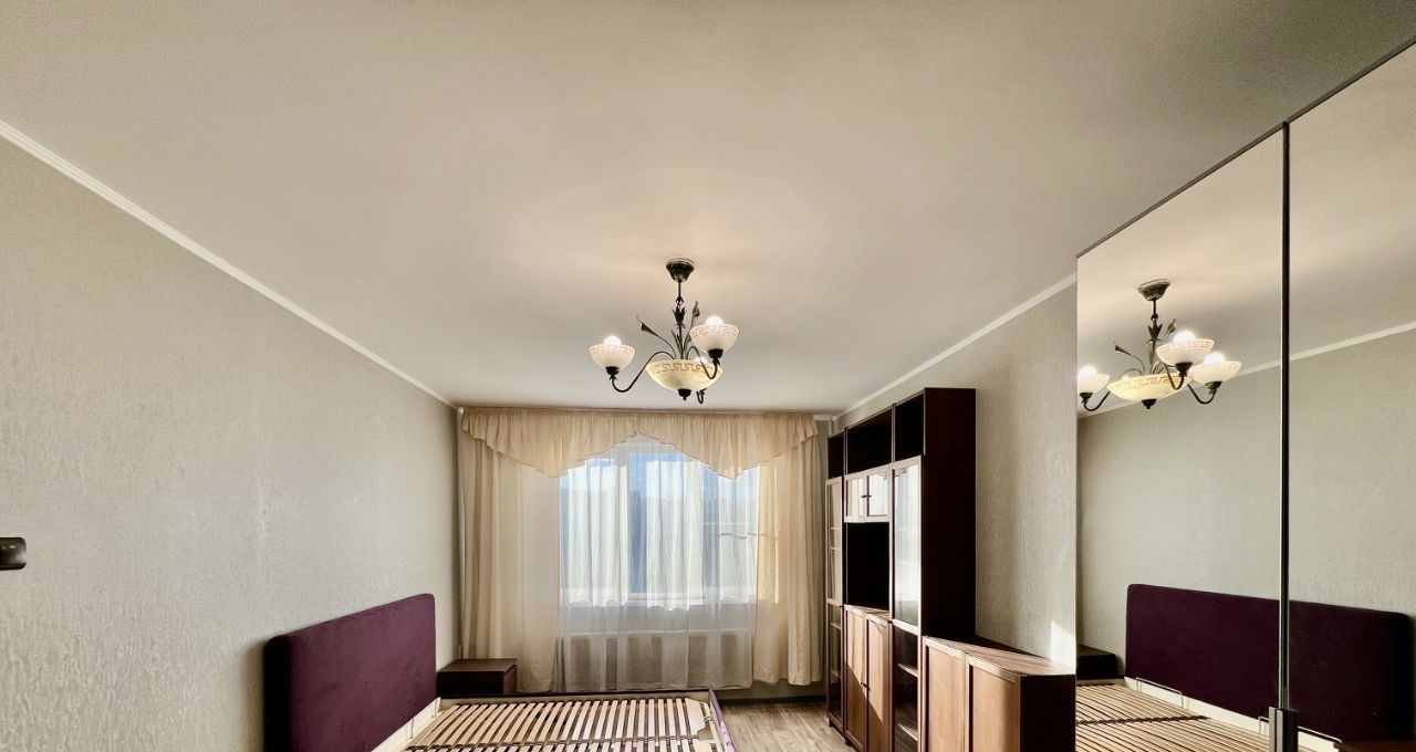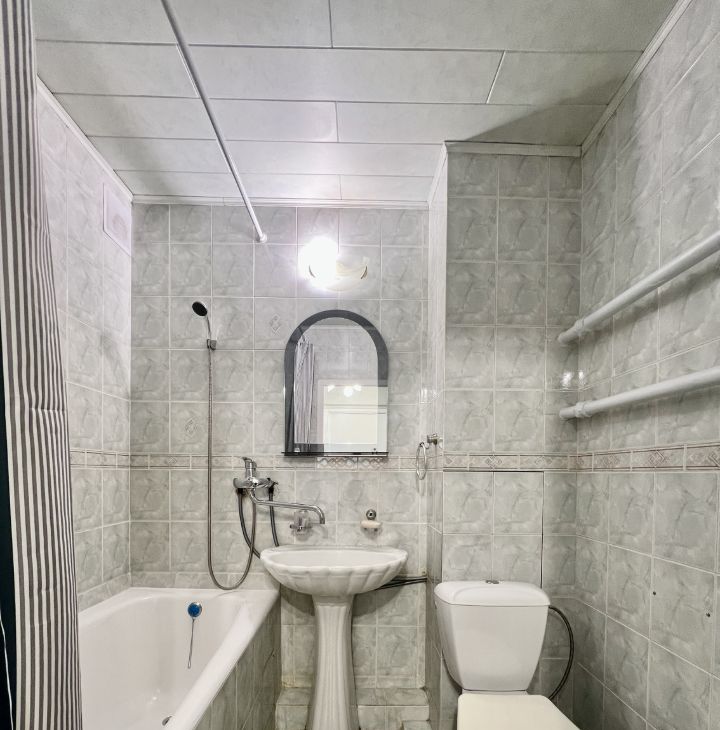 В квартире выполнен косметический ремонт, есть вся необходимая мебель как в комнате, так и на кухне. Для вашего удобства установлены холодильник и стиральная машина. Планировка включает совмещённый санузел с ванной и балкон, откуда открывается приятный вид.