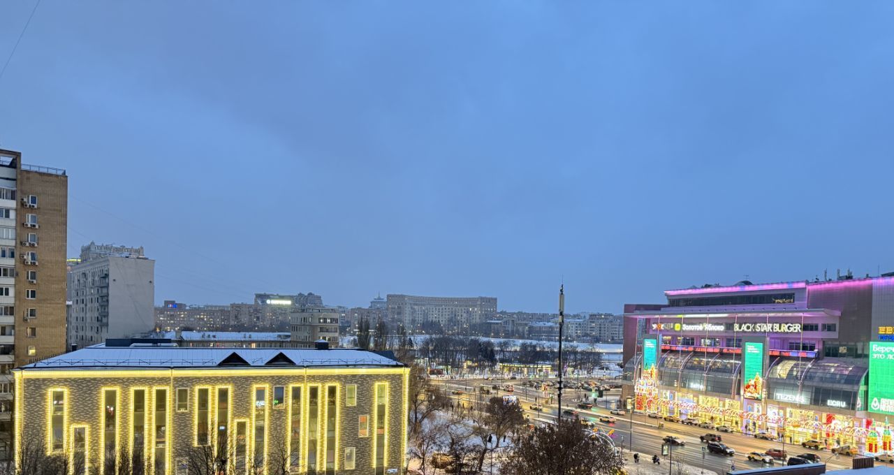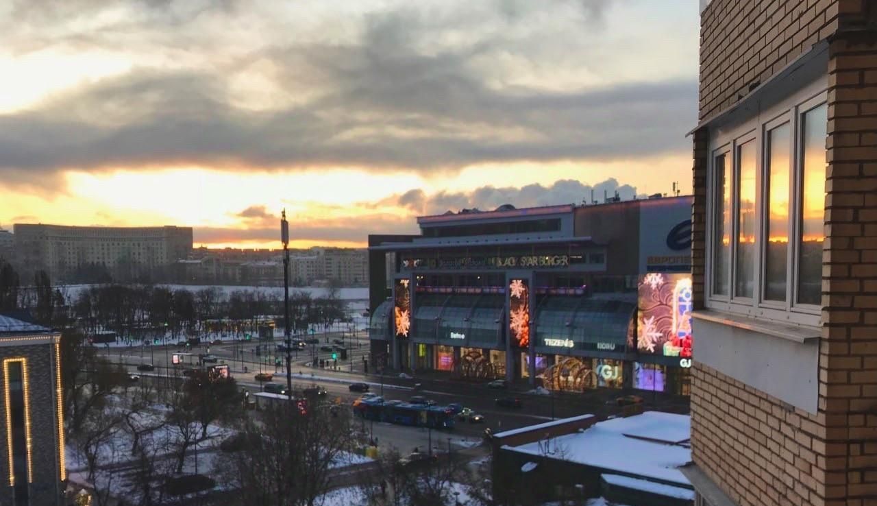 Вид из окна на внешнюю часть дома, на ТЦ Европейский.