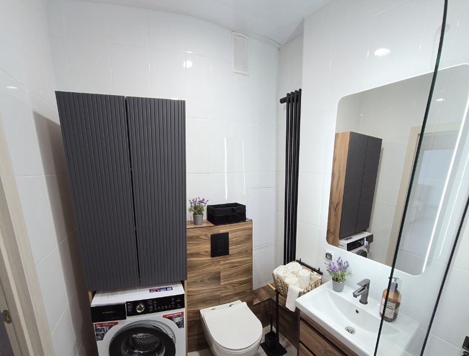 Квартира с новым евроремонтом, полностью готова к проживанию. Внутри имеется вся необходимая мебель как в комнате, так и на кухне. Из техники в вашем распоряжении кондиционер, холодильник, посудомоечная машина, телевизор и стиральная машина. Санузел совмещенный, оборудован ванной. В квартире также есть балкон.