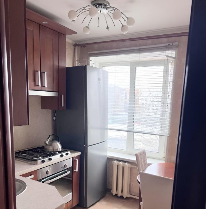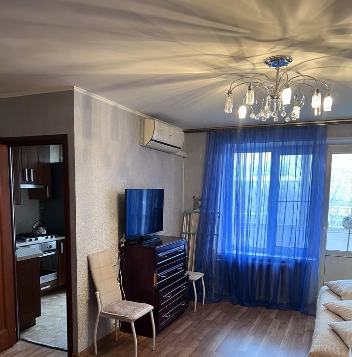 В квартире есть всё необходимое для комфортного проживания. Выполнен косметический ремонт, установлена современная мебель как в комнате, так и на кухне. Из техники есть кондиционер, холодильник, телевизор и стиральная машина. Санузел совмещённый, в ванной комнате установлена ванна. Из окна открывается вид на улицу, а на балконе можно насладиться свежим воздухом.
