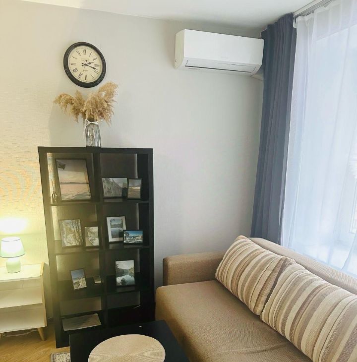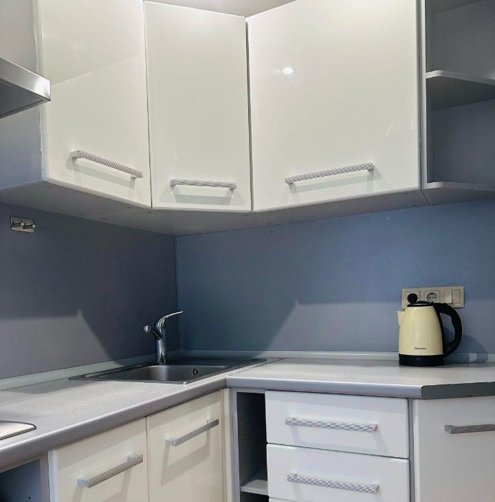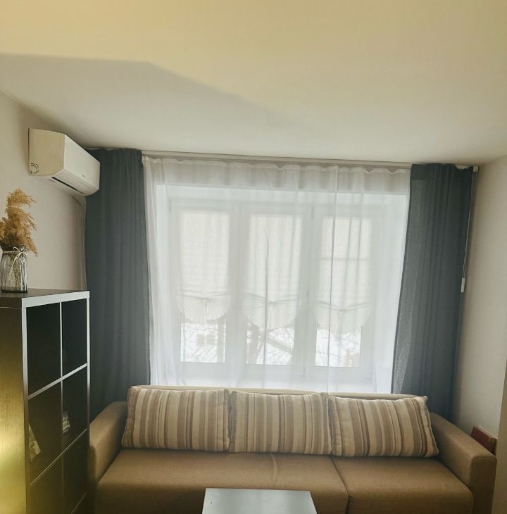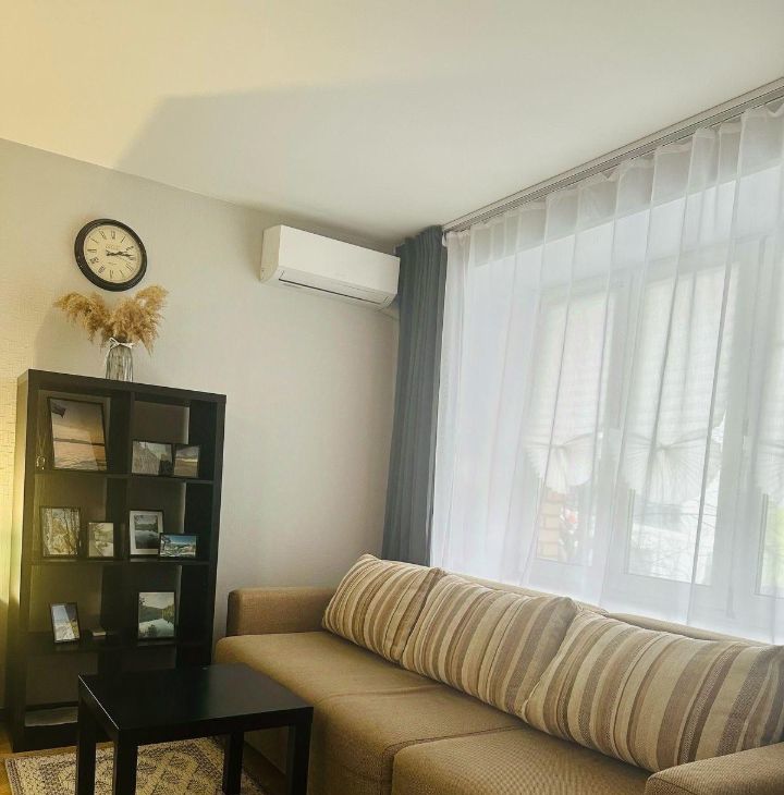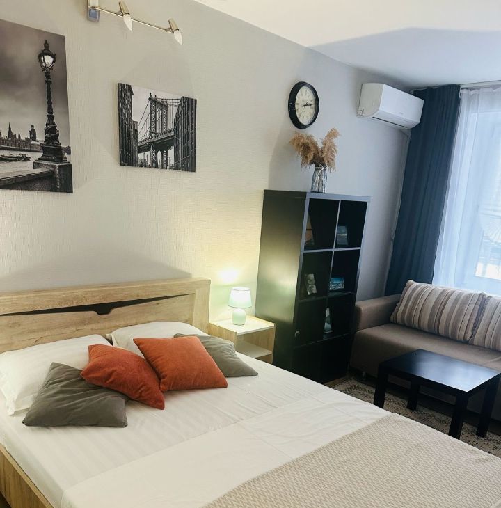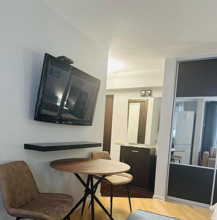 Квартира с евроремонтом, в которой всё продумано до мелочей. Просторная комната с мебелью и кондиционером создаёт атмосферу уюта и комфорта. Кухня также полностью оборудована и меблирована, что позволяет сразу же готовить любимые блюда. В квартире есть всё необходимое для комфортного проживания: холодильник, телевизор и стиральная машина. Санузел совмещённый, с душевой кабиной.