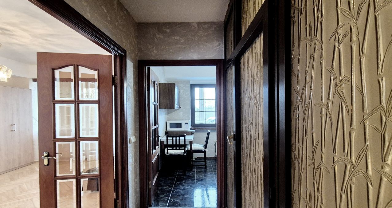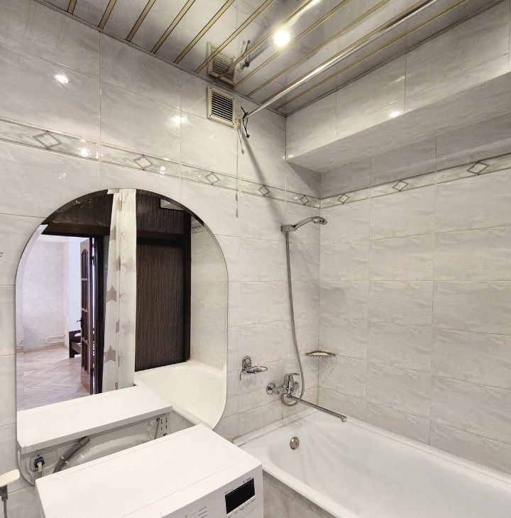 В основной комнате 2 окна с выходом на просторную лоджию, есть полноценная двухспальная кровать с новым матрасом, диван, шкаф, комод. В прихожей шкаф купе с местами для хранения одежды. В квартире есть вся необходимая мебель и техника: кухонный гарнитур, плита, духовой шкаф, холодильник, микроволновая печь, стиральная машина.