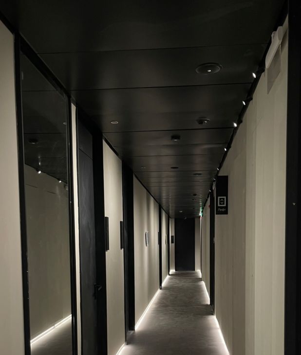 Закрытая благоустроенная территория с зонами отдыха, фонтанами и местами для прогулок. В доме современная система безопасности. На этаже мягкий свет и зеркала в полный рост, создающие ощущение уюта и продуманного пространства.