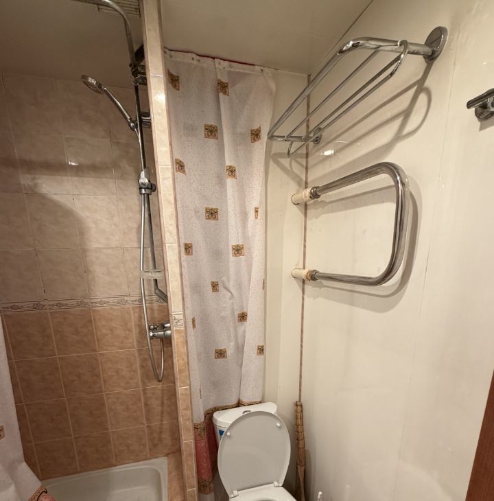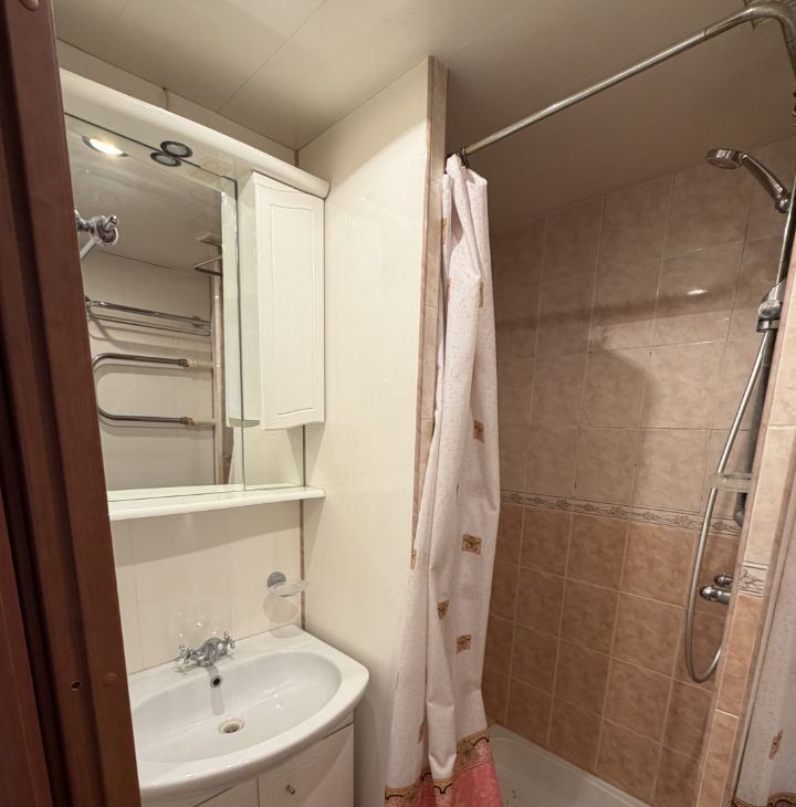 Квартира без ремонта, но есть все необходимое для комфортного проживания. В комнате и на кухне установлена мебель. В санузле установлена душевая кабина. Высота потолков составляет 2.48 метра, а окна выходят на улицу, что обеспечивает хорошее естественное освещение.
