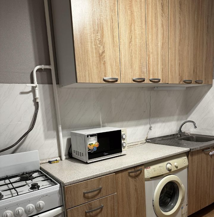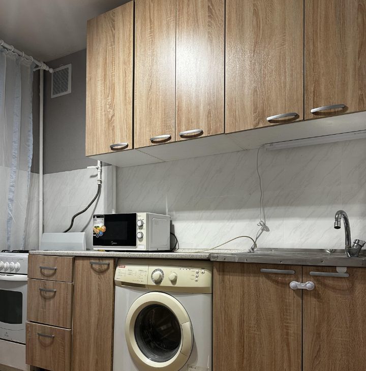 Квартира оборудована всем необходимым для комфортного проживания. Совмещённый санузел оснащён ванной, а окна выходят во двор, что гарантирует тишину и уют. На кухне и в комнате есть вся необходимая мебель. Из техники к вашим услугам холодильник и стиральная машина. Также подключён интернет, что идеально для удалённой работы или развлечений.