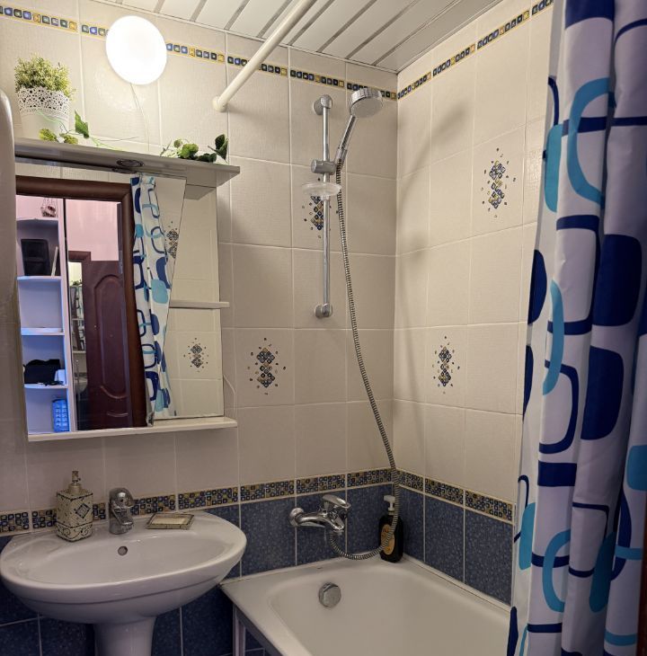 В квартире есть вся необходимая техника: холодильник, телевизор и стиральная машина. На кухне и в комнате установлена мебель, что создаёт комфортное пространство для жизни. Косметический ремонт придаёт квартире аккуратный и свежий вид. Из удобств также имеется ванная комната и отдельный санузел. Для вашего удобства в доме работают два пассажирских лифта и есть мусоропровод.