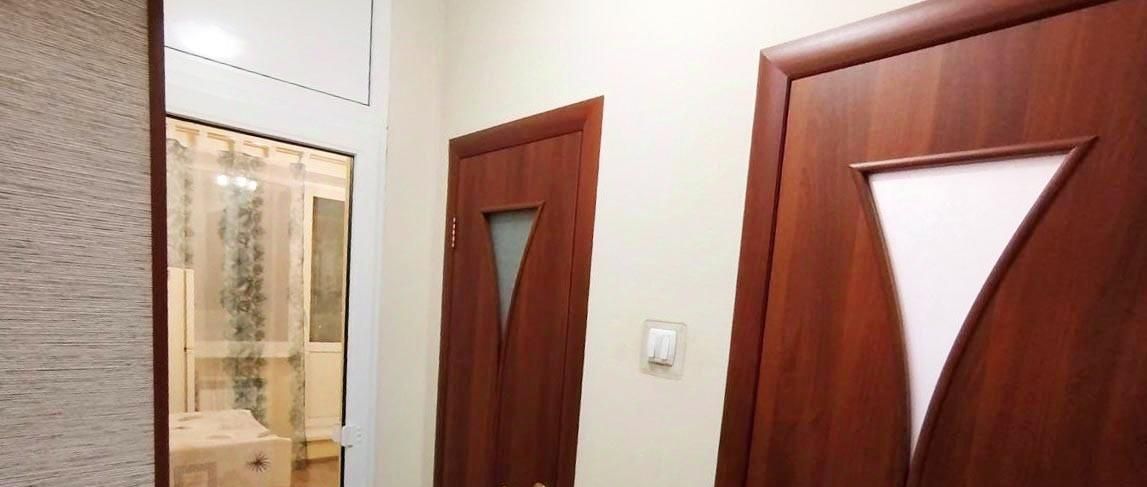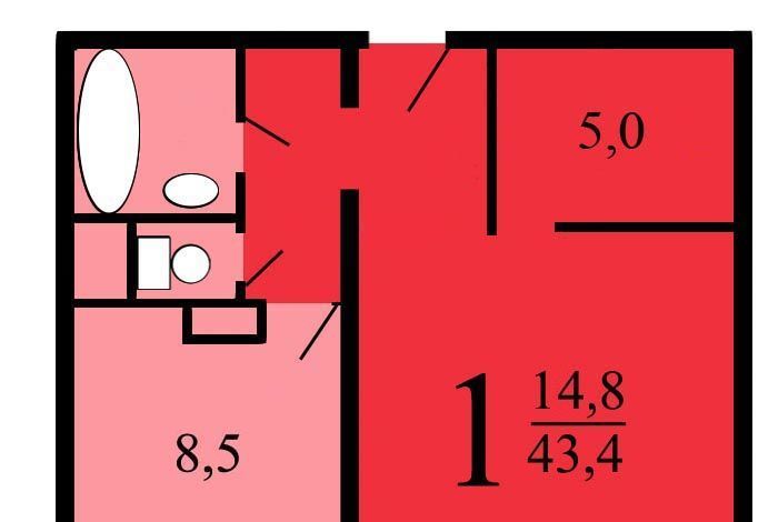 Общая площадь квартиры - 43,4 кв.м., жилая площадь 20 кв.м., в комнате сделана перепланировка и выделена еще одна небольшая комната 5 кв.м. с спальным местом и шкафом-купе.