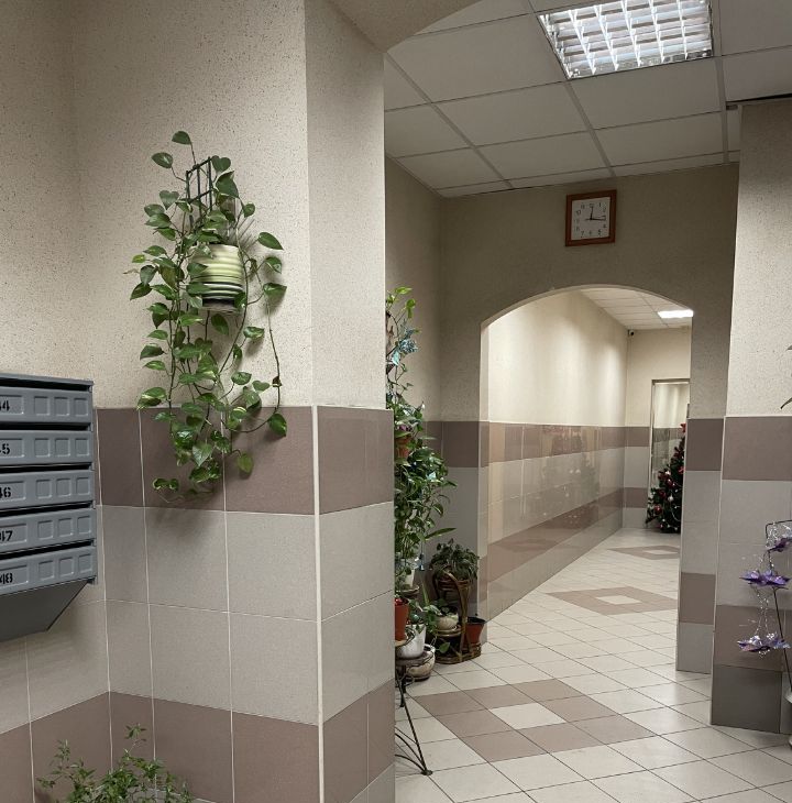 Закрытый холл на 4 квартиры. Порядок и чистоту в подъезде обеспечивает своя управляющая компания.