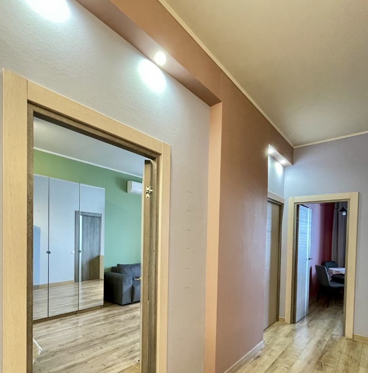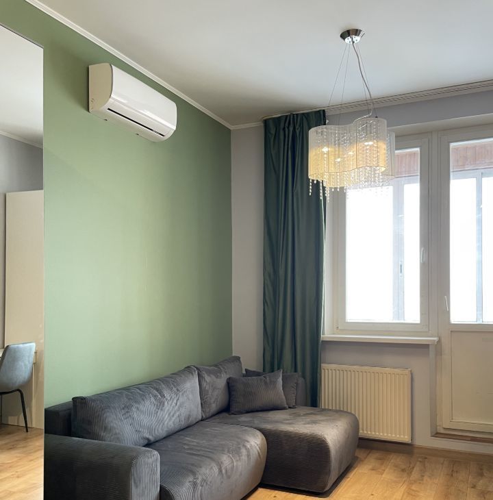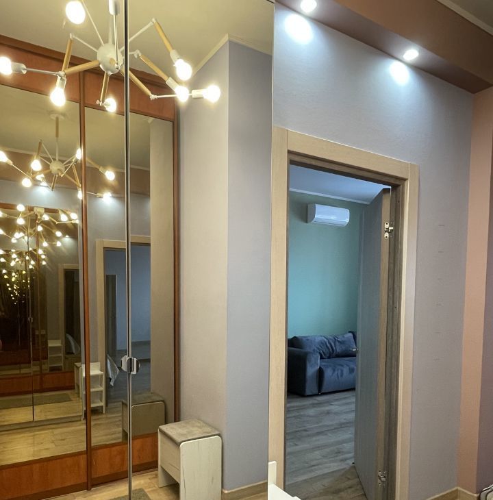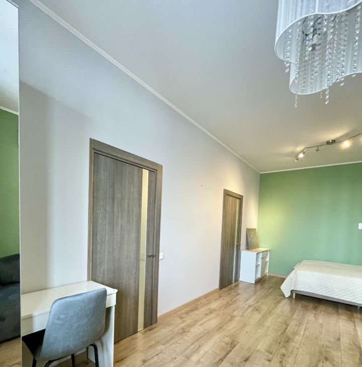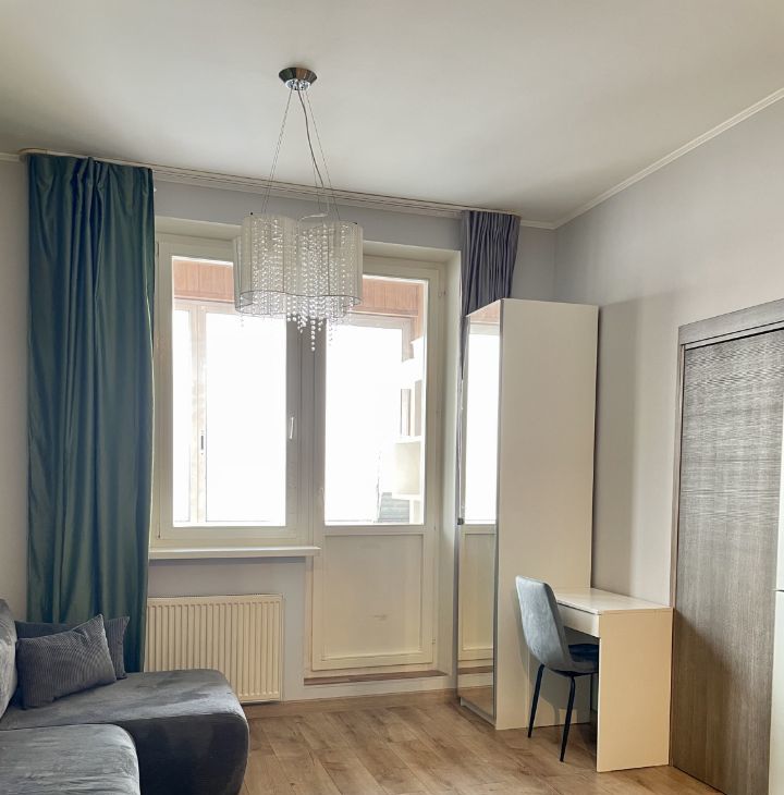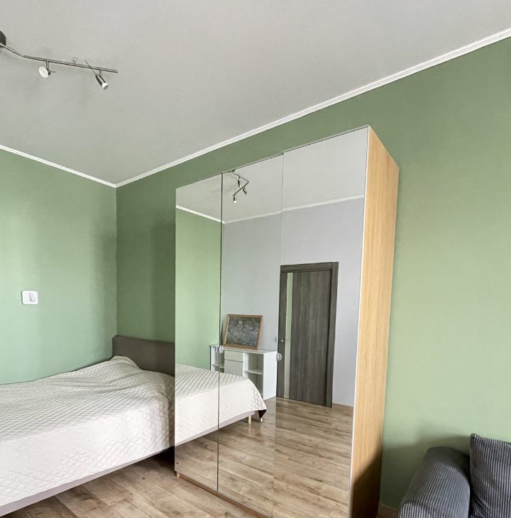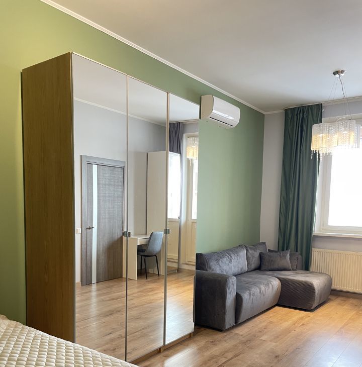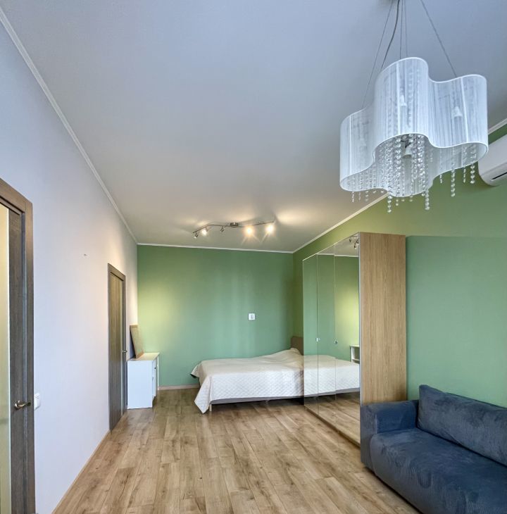 В квартире выполнен современный ремонт, комната зонирована на спальню и гостиную, установлены мебель и бытовая техника - есть все необходимое для комфортного и уютного проживания, концепция заходи и живи.