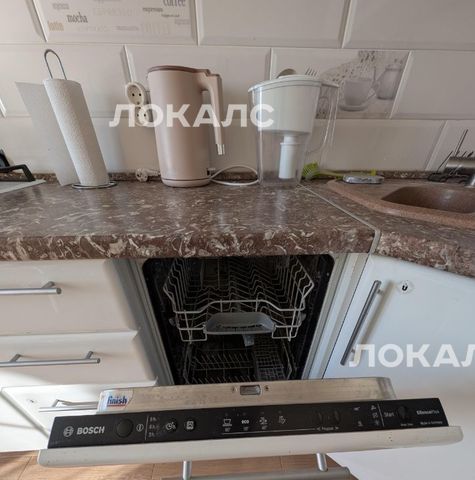 На кухне встроенная посудомоечная машинка, стиральная машинка.