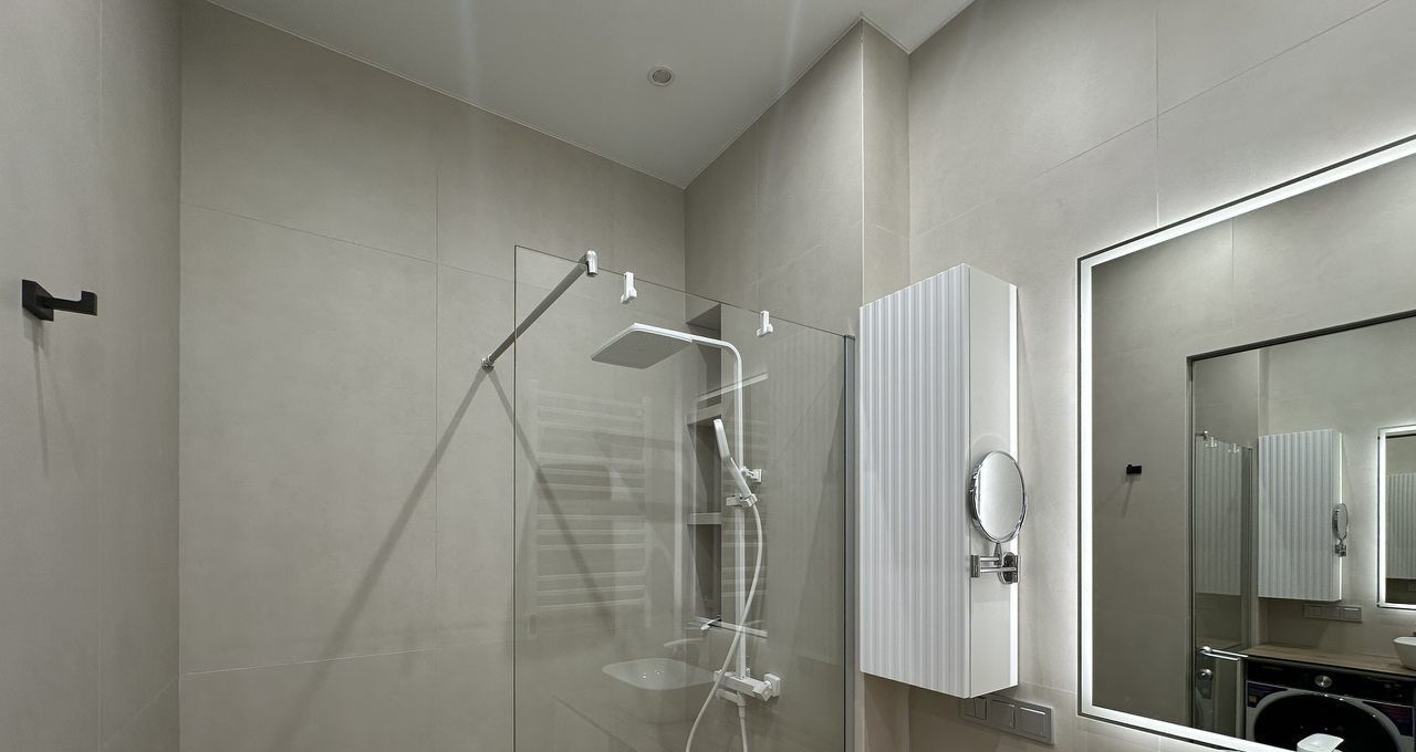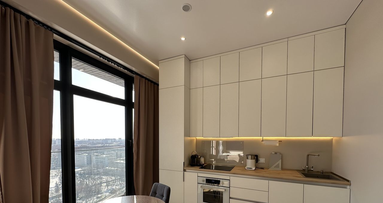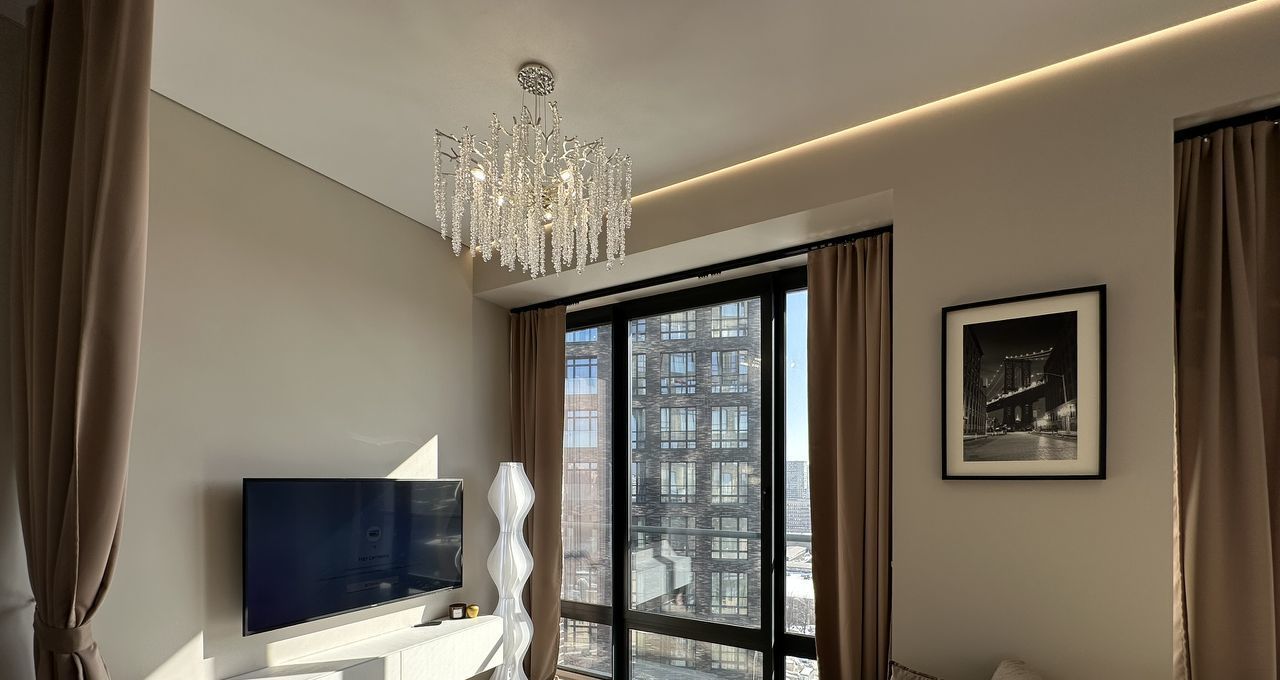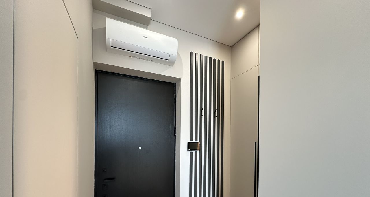 Полностью готова для комфортной жизни, квартира оснащена всей необходимой мебелью и техникой: встроенный холодильник, духовой шкаф, варочная панель, кофемашина, электрический чайник, фильтр для питьевой воды, стиральная машина с сушкой, кондиционер, телевизор и даже робот-пылесос.