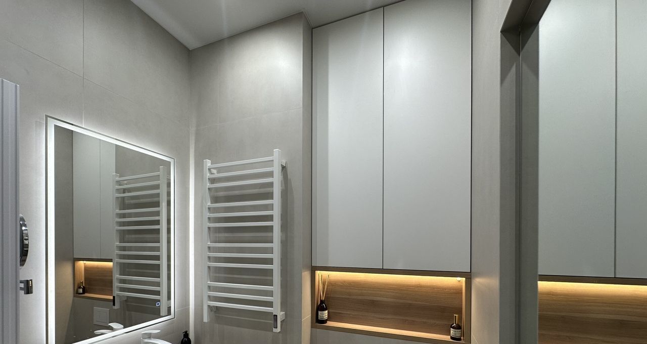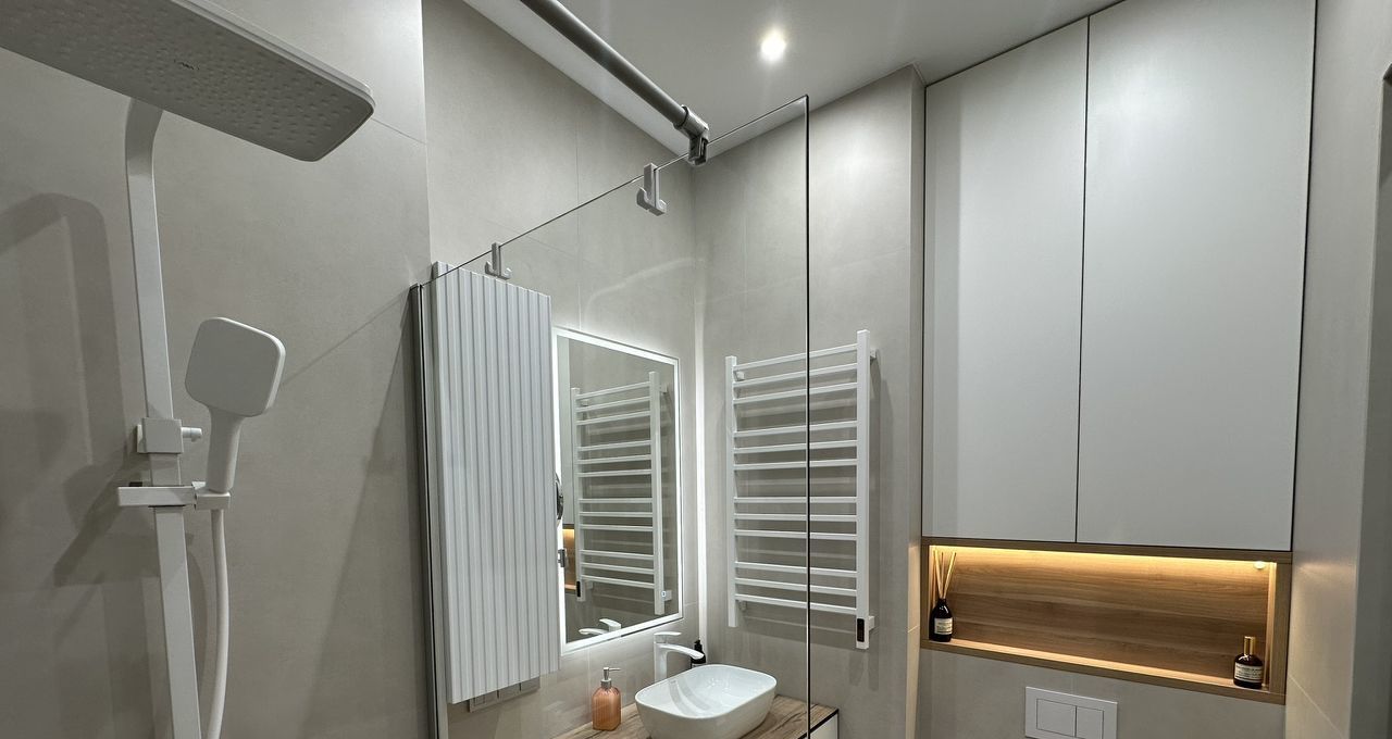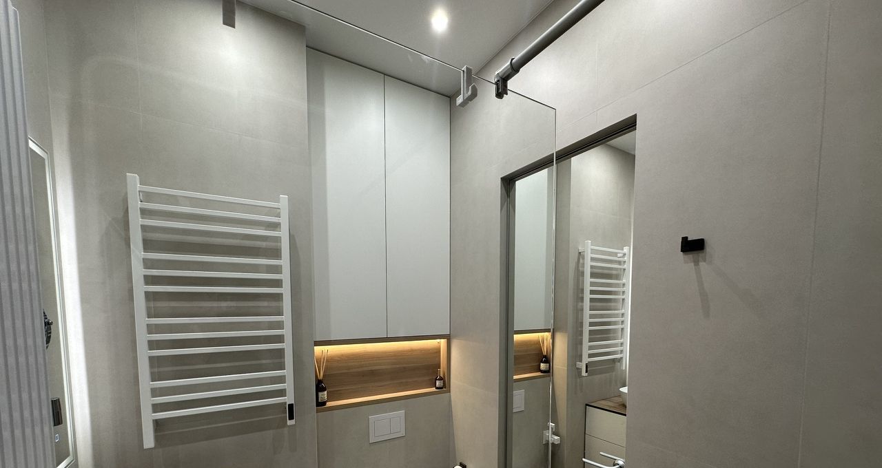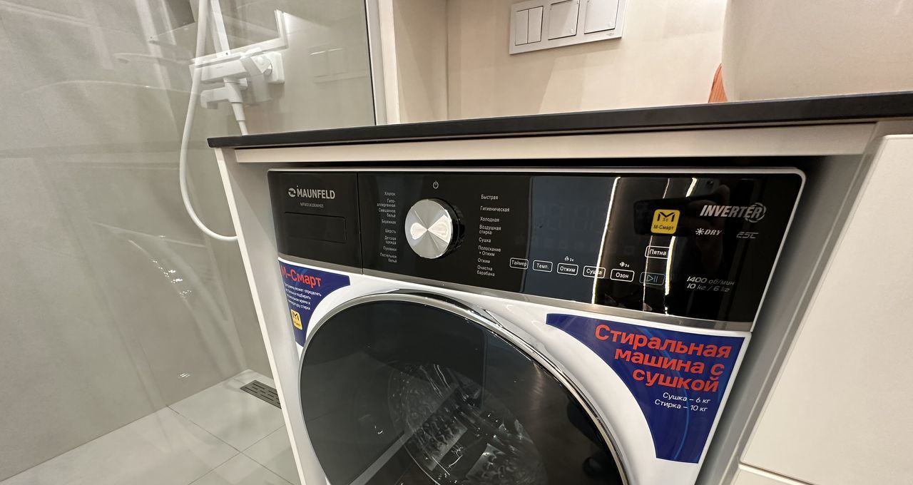 Полностью готова для комфортной жизни, квартира оснащена всей необходимой мебелью и техникой: встроенный холодильник, духовой шкаф, варочная панель, кофемашина, электрический чайник, фильтр для питьевой воды, стиральная машина с сушкой, кондиционер, телевизор и даже робот-пылесос.