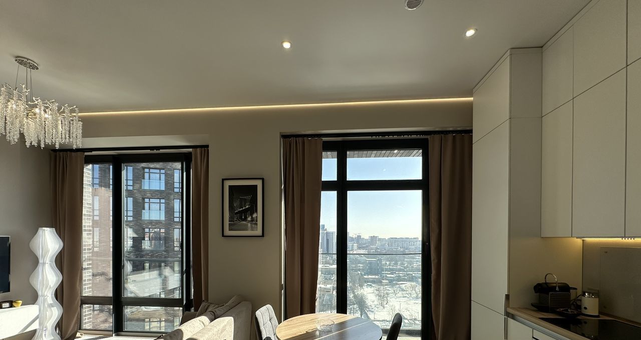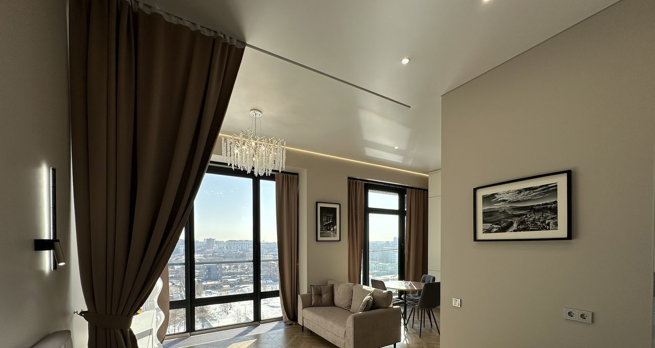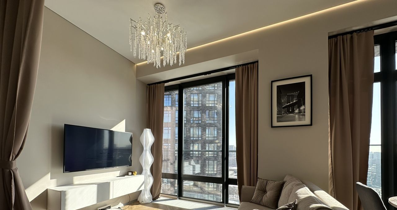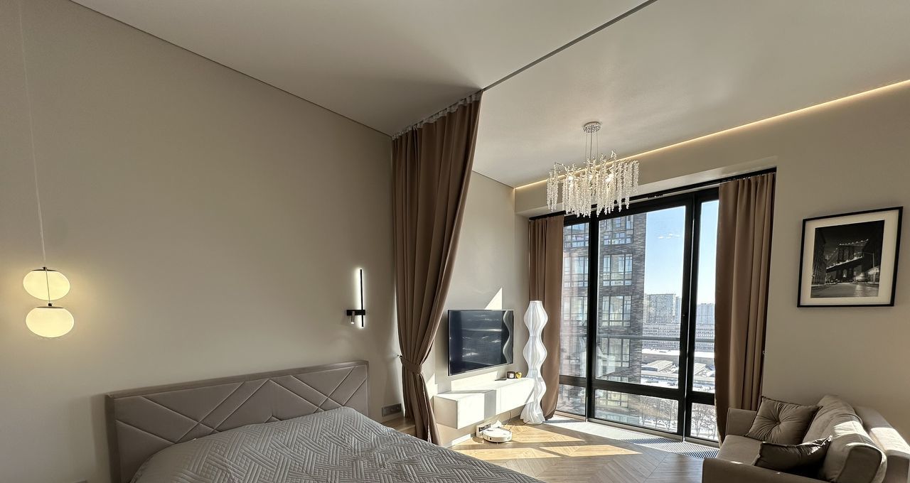 Квартира отличается продуманной планировкой и современным интерьером. Большие панорамные окна наполняют пространство естественным светом и создают ощущение простора. В отделке использованы качественные материалы, а каждая деталь интерьера подобрана с вниманием к комфорту будущих жильцов.