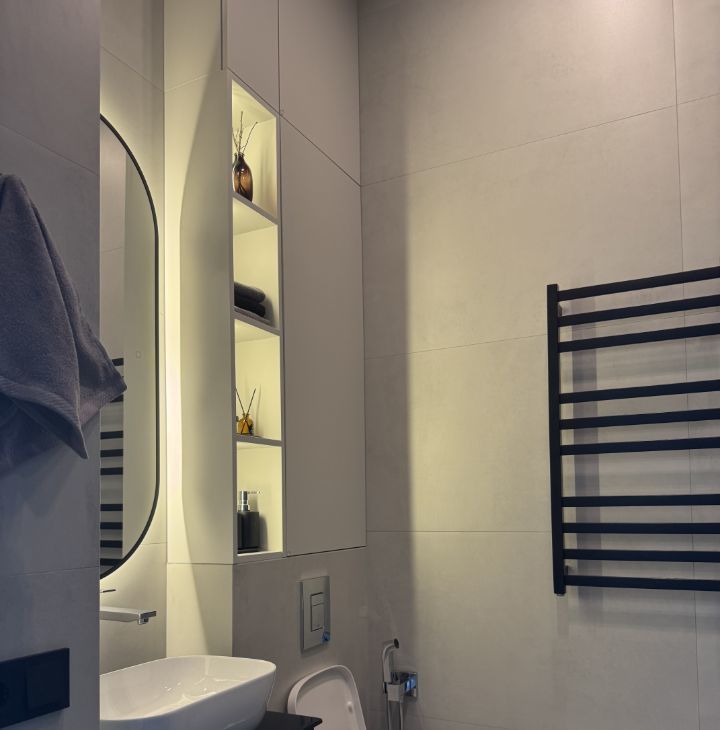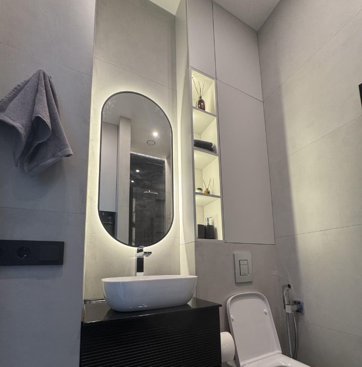 - Комфортная высота столешницы на кухне 93 см. и накладной раковины в санузле 95 см. (не нужно сильно наклоняться людям с ростом выше 170 см.)