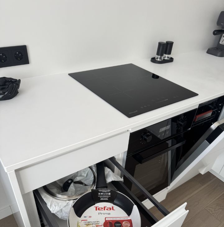 - Плита, посудомойка, духовка, микроволновка, холодильник, кофе-машина, чайник, пылесос-ручка, робот-пылесос