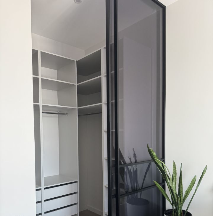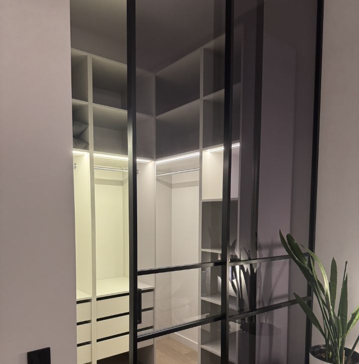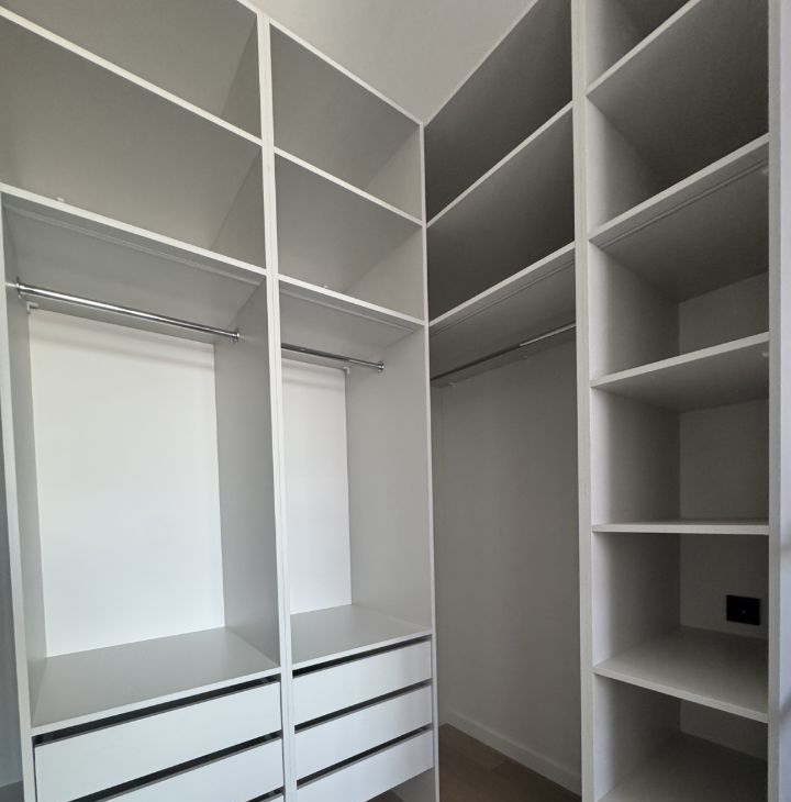 - В спальне большая гардеробная 6,5 м, с тех зоной для хранения принадлежностей для глажки и уборки. На верхних полках помещаются чемоданы (стремянка под рукой). У вас точно всегда будет порядок. Все вещи на местах. Никаких тряпок и ведер в видимой зоне квартиры!