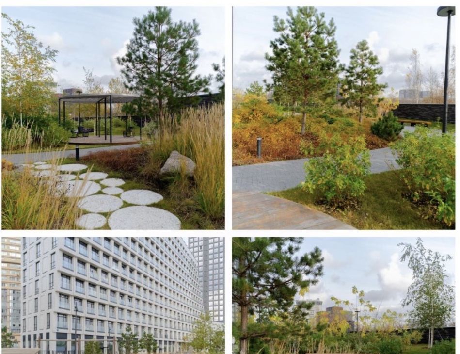 В ЖК подземный паркинг, охрана, видеонаблюдение, уютное лобби, закрытый двор с прогулочными зонами, ландшафтным дизайном, спортивными и детскими площадками.