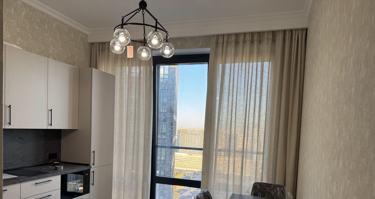 Сдается в аренду стильная 1- КОМНАТНАЯ КВАРТИРА(Евродвушка) в монолитном доме, бизнес-класса, 2024 года постройки, ЖК "Afi Park Воронцовский", улица Академика Челомея, дом 1А. Вся мебель и бытовая техника новая. Сдается в первый раз, после Евремонта. Никто не жил. Квартира находится на 18-ом этаже, высокие потолки 3,25 метра, панорамные окна в пол, вид во двор и на Восток Москвы, в квартире выполнен качественный ремонт, общая площадь 48кв.м., в жилой комнате 17кв.м., находится двухспальная кровать, две прикроватные тумбочки, комод, телевизор, встроенный шкаф-купе, люстра, кондиционер, дорогая паркетная доска. В Кухня-гостинная 16кв.м.: встроенная кухня, обеденный стол, три стула, двухкамерный холодильник Liebherr, посудомоечная машина, микроволновая печь, варочная панель, площадь позволяет поставить дополнительное спальное место. В санузле: ванна, раковина с ящиками, зеркало с внутренней подсветкой, стиральная машина автомат, обогреватель для проточной воды, унитаз с бачком, площадь: 5кв.м.. В гардеробной комнате: турникеты с полками для одежды и обуви, площадь: 6кв.м., прихожая площадь: 5кв.м.. В доме круглосуточная охрана, консьержа. Сквозные подъезды, на улицу и во двор. Двор оборудован для прогулок, занятий спортом и детскими площадками. Через дорогу от комплекса расположен Воронцовский парк с прудами и местами для отдыха и спорта. Развитая инфраструктура, сеть магазинов, не далеко от дома расположены много вузов: МИРЭА, МГУ, РУДЕН, РГУ нефти и газа им. Губкина, и т. д. . Квартира сдается на длительный срок, без животных. Собственник рассматривает 1-2чел. русс.можно с ребенком от 8лет. Стоимость 110т.р. Без Торга.