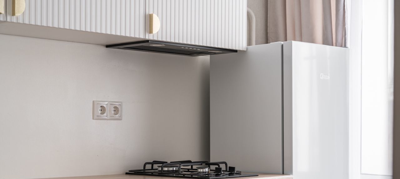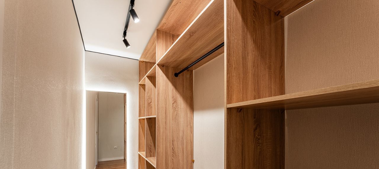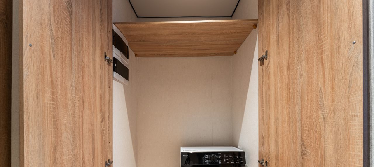 Просторная гардеробная для хранения, встроенная посудомоечная машина, духовой шкаф, стиральная машина, варочная газовая панель, вытяжка, холодильник.