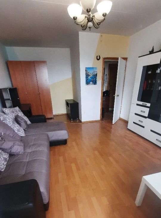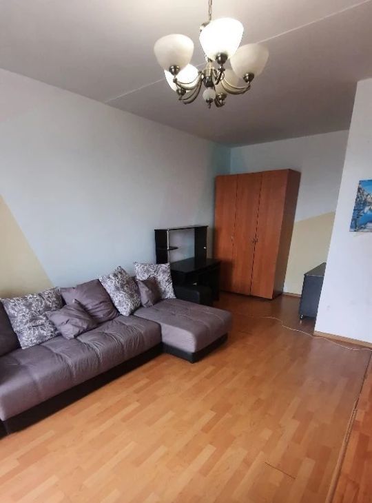 Сдается уютная однокомнатная квартира на длительный срок. В квартире выполнен косметический ремонт, что создает приятную атмосферу для проживания. Просторная комната оборудована шкафами и мягкой мебелью, включая удобный диван. Из мебели также имеется телевизор.