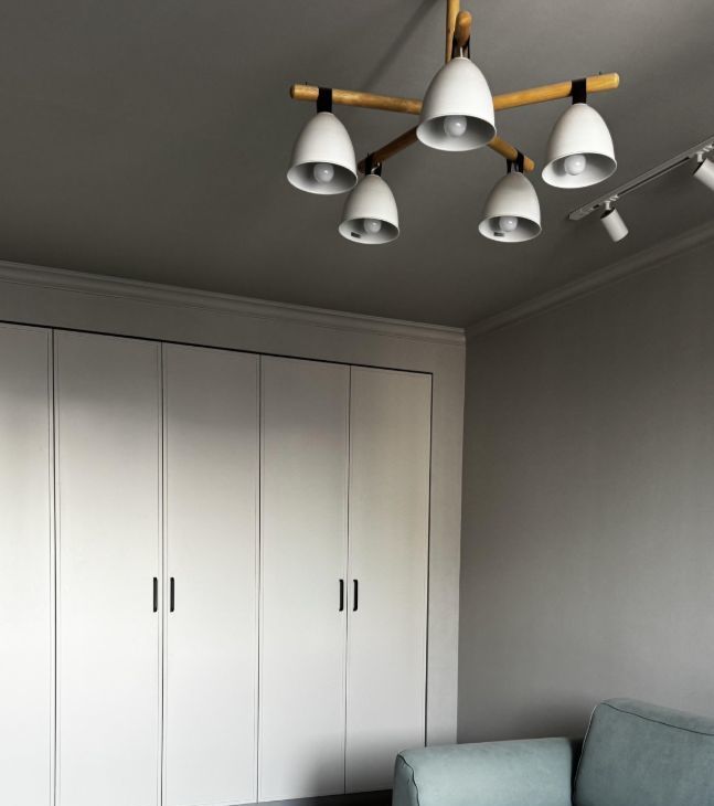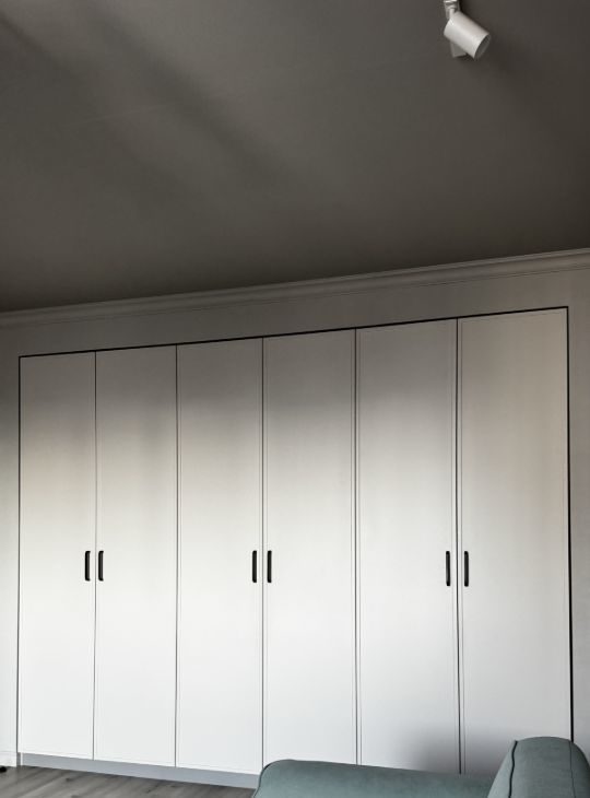 Просторная гостиная с большим и вместительным встроенным шкафом