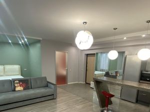 Все необходимое для проживания: удобный диван, раскладное кресло, огромный шкаф и системы хранения, вся кухонная мебель. Из техники: кондиционер, холодильник, стиральная и посудомоечная машина, микроволновая печь с грилем, чайник (все в исправном состоянии). Балкон из кухни, утеплен.