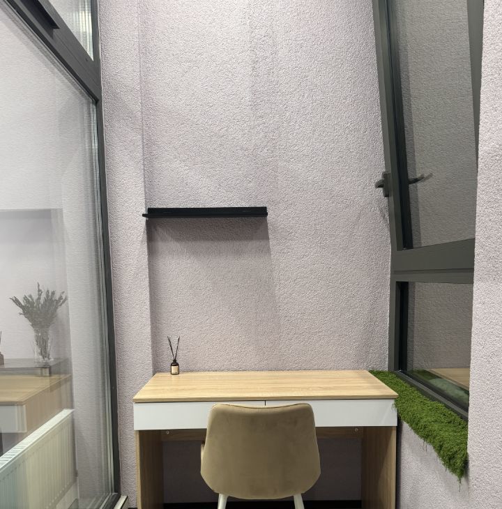 На балконе оборудована удобная рабочая зона, идеально подойдёт для удалённой работы или учёбы.
