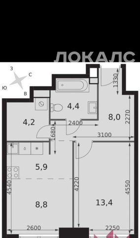 1-к кв. Москва ул. Академика Волгина, 2 (45.0 м²)
