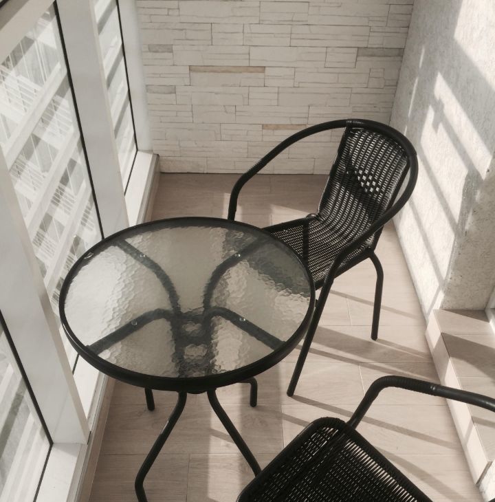 Инверторный кондиционер Toshiba. Большой панорамный балкон с зоной отдыха.