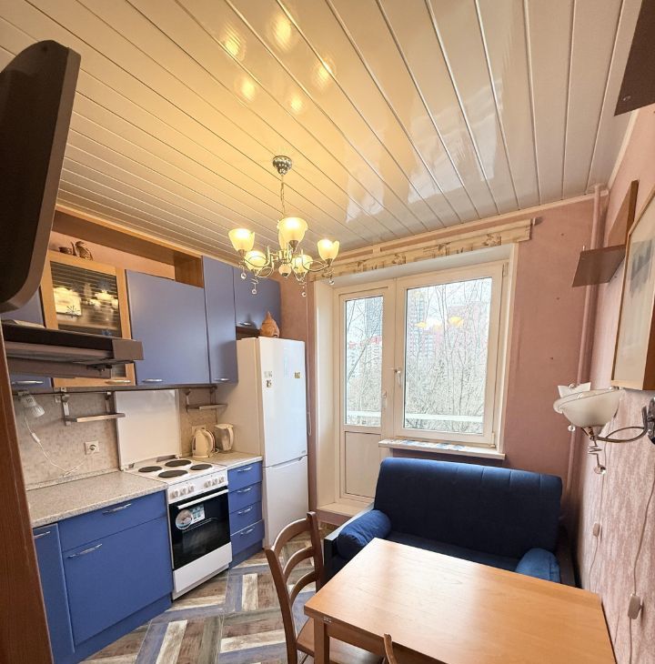 Сдаётся уютная однокомнатная квартира на длительный срок. В квартире выполнен косметический ремонт, что создаёт приятную атмосферу для проживания. Кухня площадью 8,5 м² оснащена необходимой бытовой техникой, включая телевизор.