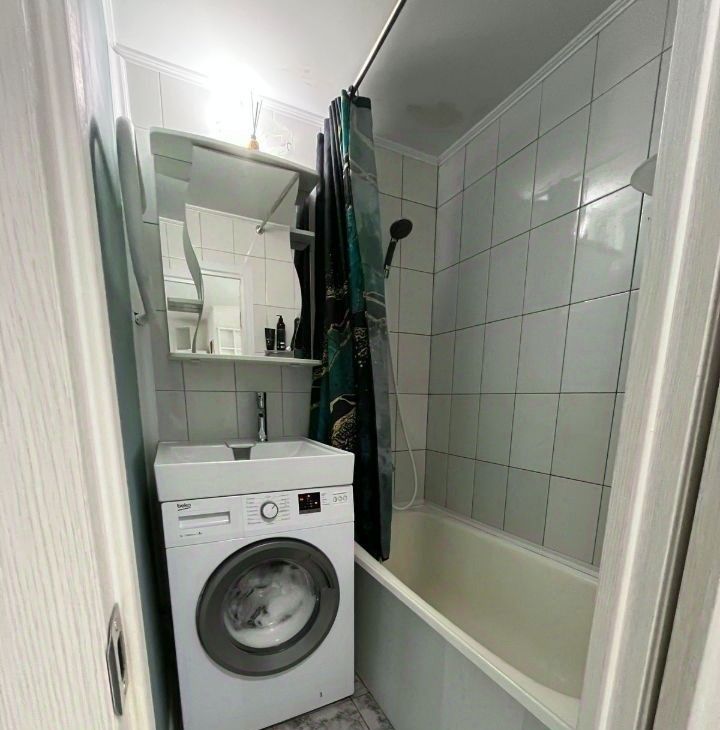 Квартира оформлена в современном дизайнерском стиле и полностью готова к проживанию. В распоряжении жильцов есть вся необходимая мебель как в комнате, так и на кухне. Кухня оборудована современными бытовыми приборами: холодильником, посудомоечной машиной и стиральной машиной. В комнате установлен телевизор. Санузел раздельный, есть ванна. Окна выходят во двор, поэтому в квартире всегда тихо и спокойно.