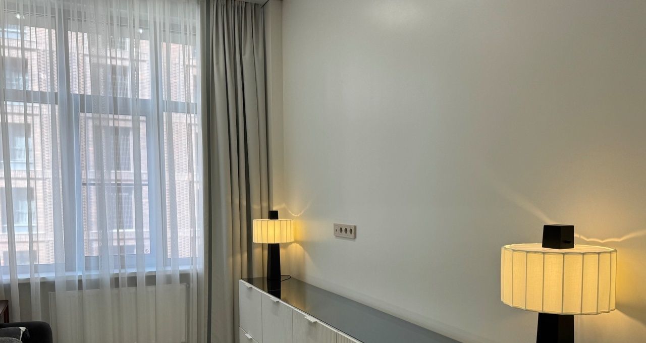 Квартира выполнена с дизайнерским ремонтом, где каждая деталь создает ощущение уюта и порядка. Просторная кухня-гостиная станет центром притяжения — здесь удобно готовить, принимая гостей или наслаждаясь уединенным ужином. Отдельная спальня гарантирует приватный отдых. Высокие потолки 3.2 метра и панорамные окна во двор наполняют пространство светом и воздухом. Квартира полностью укомплектована всей необходимой техникой и мебелью, включая кондиционер, посудомоечную машину и стиральную машину.