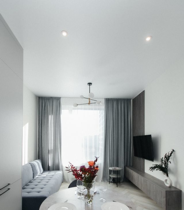 3. Высокие потолки, большие окна, много света
