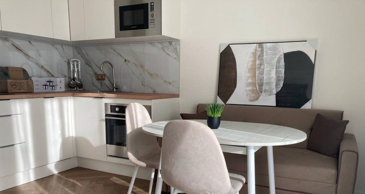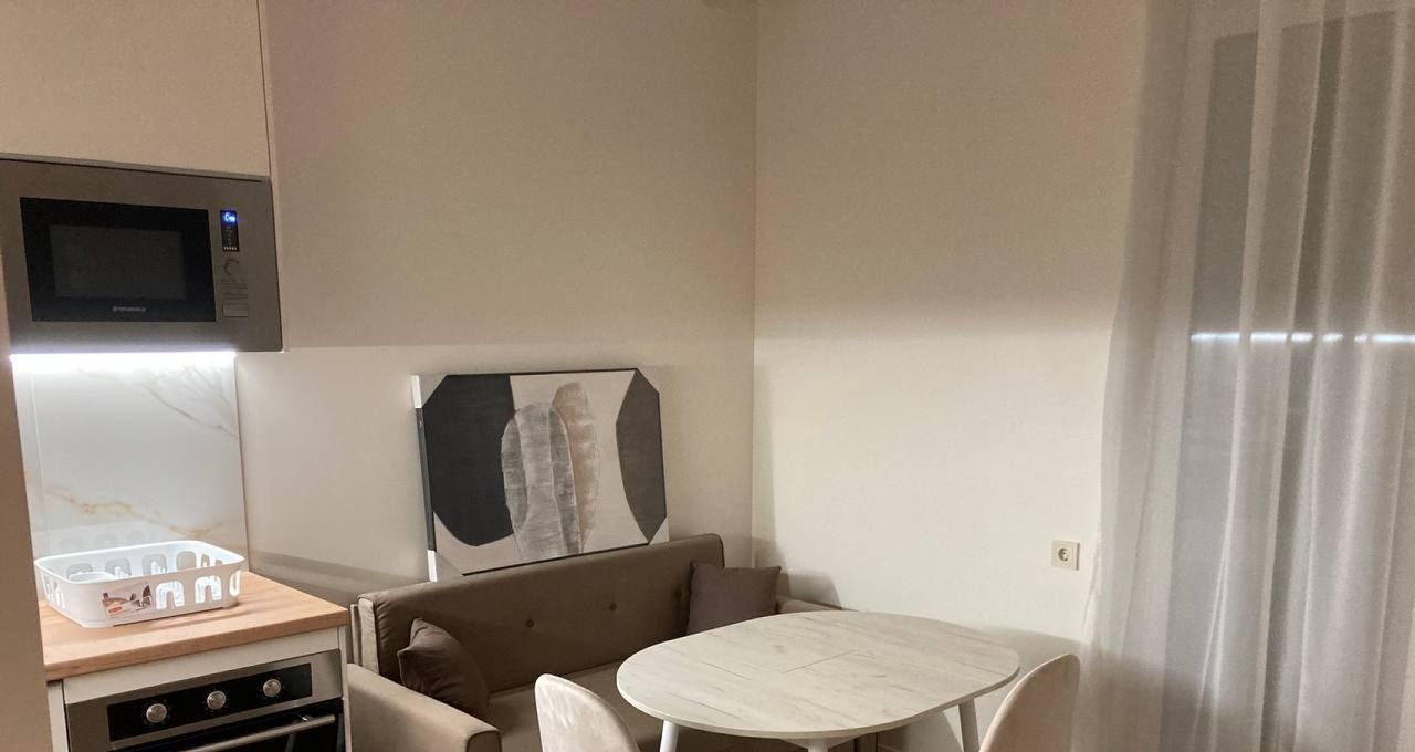 В квартире есть всё для комфортной жизни: 1. Кухня-гостиная, оснащенная кухонным гарнитуром от производителя Беккер и современной, встроенной техникой, в том числе: двухкамерный холодильник Gorenje, варочная индукционная панель, ПММ, духовой шкаф, печь СВЧ., посуда, ВТЧ. для приготовления пищи, а также мебелью: полноценный раздвижной диван со спальным местом, обеденный стол со стульями, навесная тумба, умный телевизор HD 4K 50 2. Просторная ванная комната с необходимой сантехникой и стиральной машиной. 3. Прихожая с вместительным, встроенным шкафом для хранения одежды и обуви, а также антресолями. 4. Уютная спальня с кроватью 180/200, прикроватные тумбочки, широкая навесная тумба. Дополнительным бонусом является вместительная гардеробная, оснащенная функциональной системой хранения. 5.Ярким преимуществом данной квартиры является просторная (10 м2) веранда с утеплённым остеклением, что позволяет использовать её как дополнительное жилое помещение ( кабинет, зона отдыха и т.д). При этом, количество подобных квартир в ЖК ограничено!
