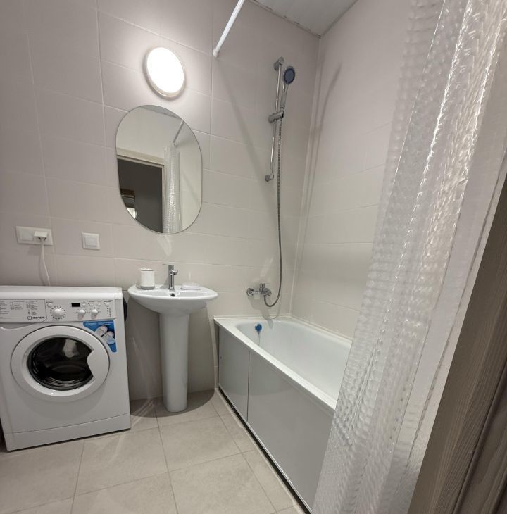 В квартире есть раздельный санузел со стиральной машинкой, а также балкон с видами на город.