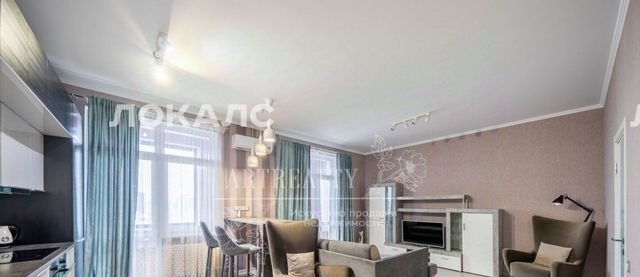 Высокие потолки - 3 м. Ремонт - дизайнерский с применением материалов премиум класса.Есть вся необходимая техника, в том числе посудомоечная машинка и кондиционер.Вид с окон - обзорный,в сторону Москва-Сити.
