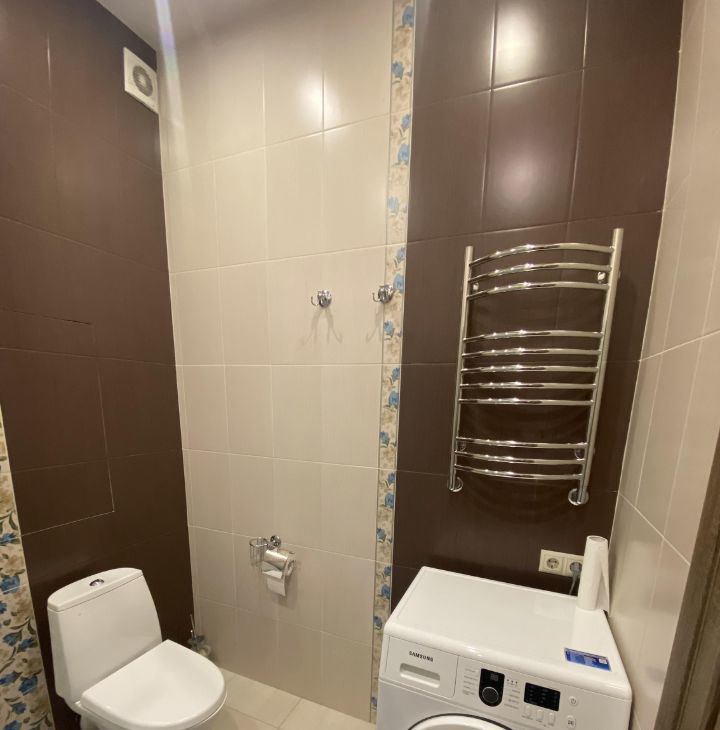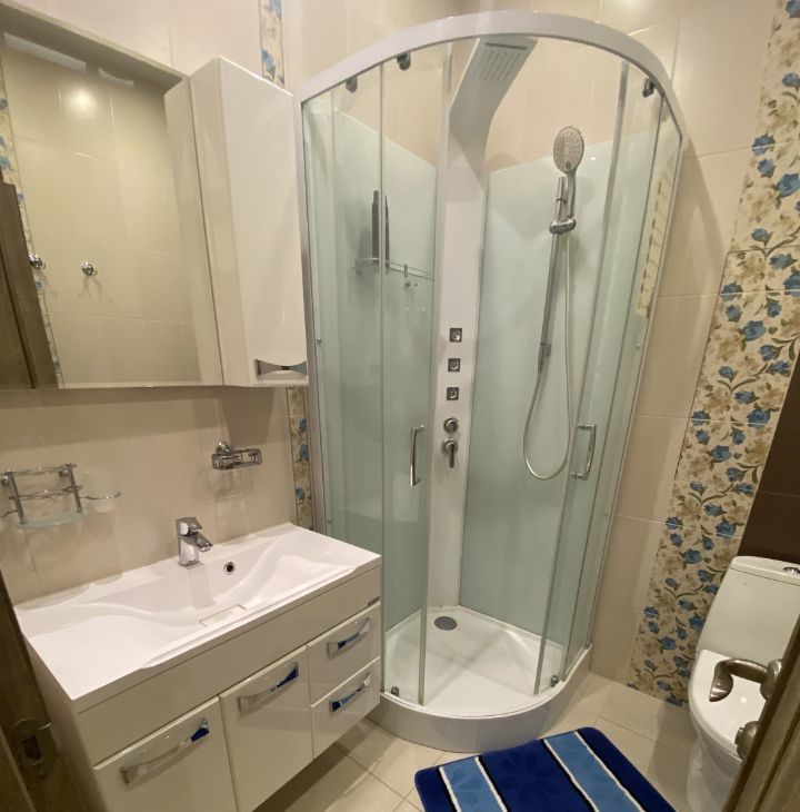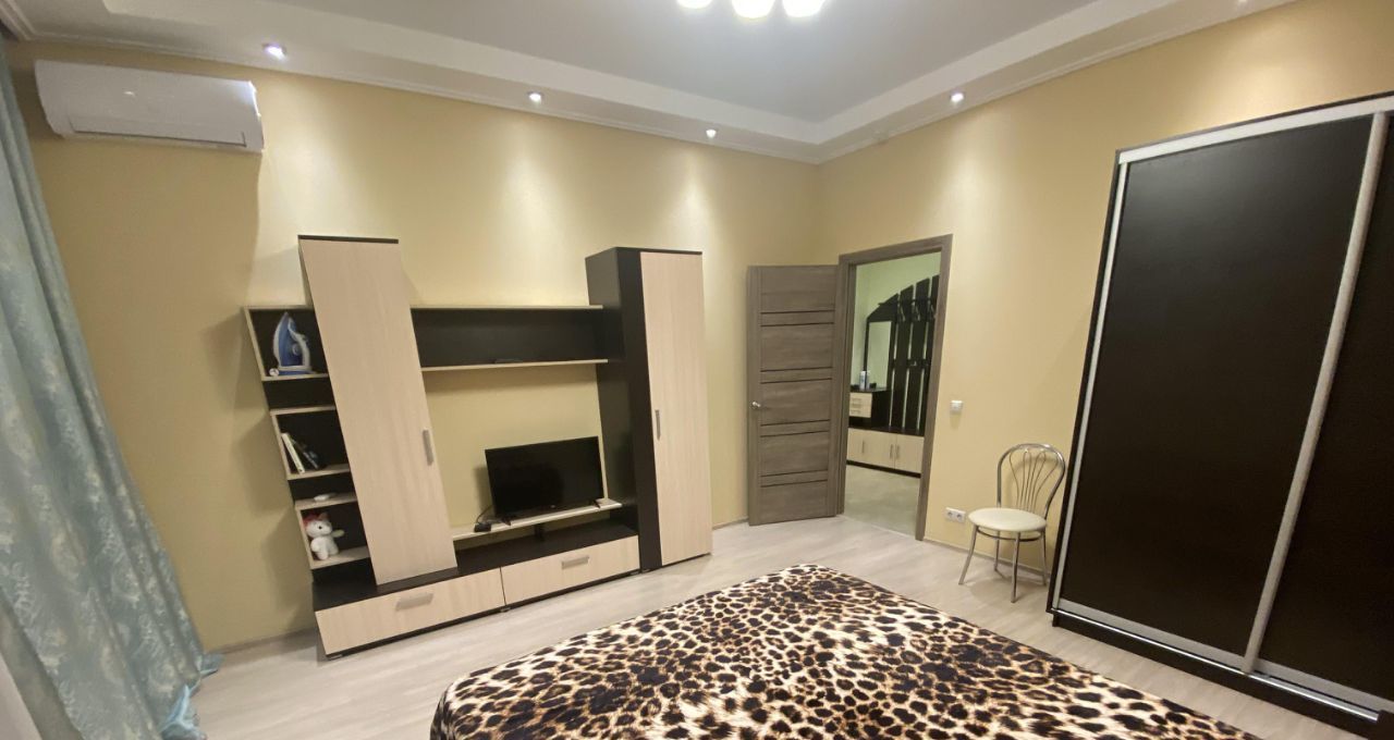 Евроремонт. Кровать с ортопедическим матрасом 160*200 см, горка, шкаф-купе, прихожая. Современный кухонный гарнитур со встроенной бытовой техникой: посудомоечная машина, духовой шкаф Hansa, варочная панель,вытяжка. Два телевизора LG . Микроволновая печь Supra. Обустроенная гардеробная комната 4 кв.м, пылесос,гладильная доска. Установлен кондиционер. Теплые полы в коридоре. Стиральная машина Samsung.