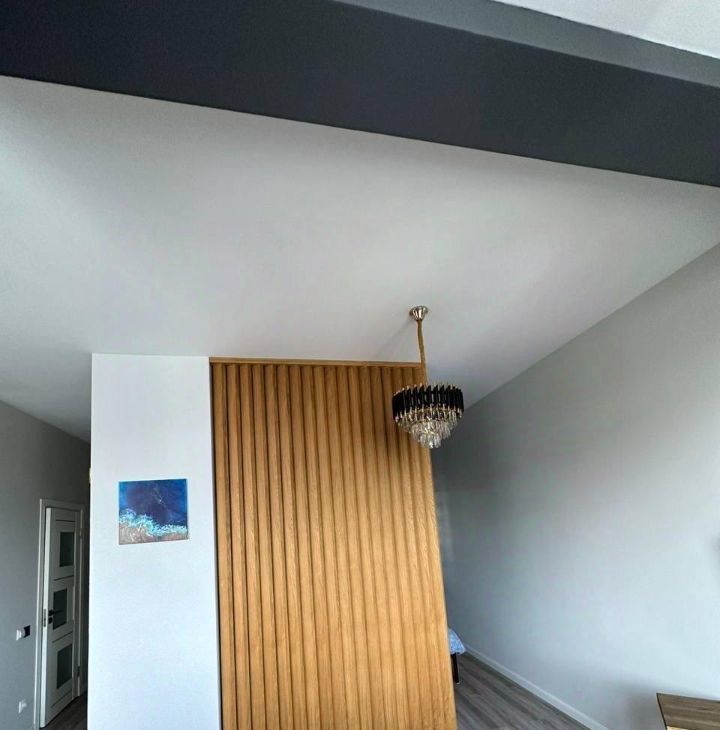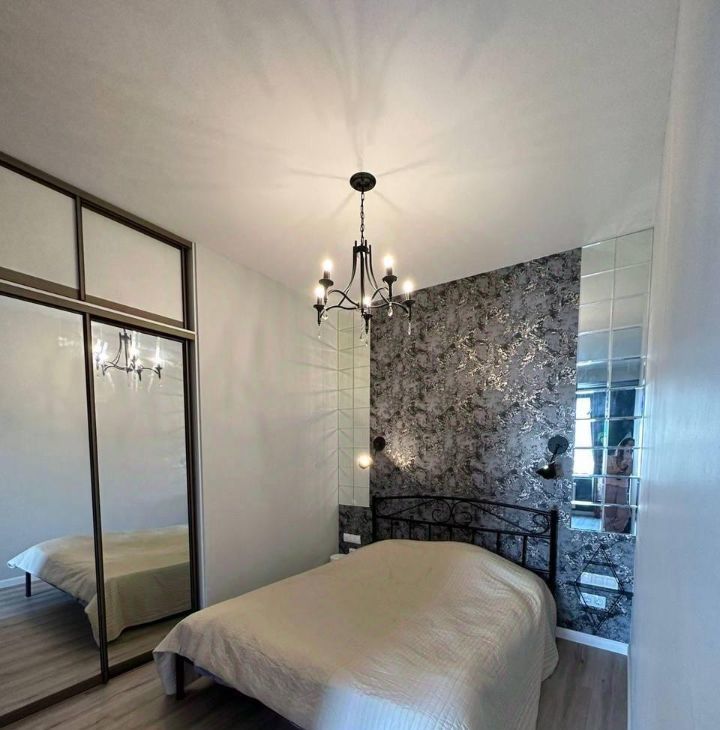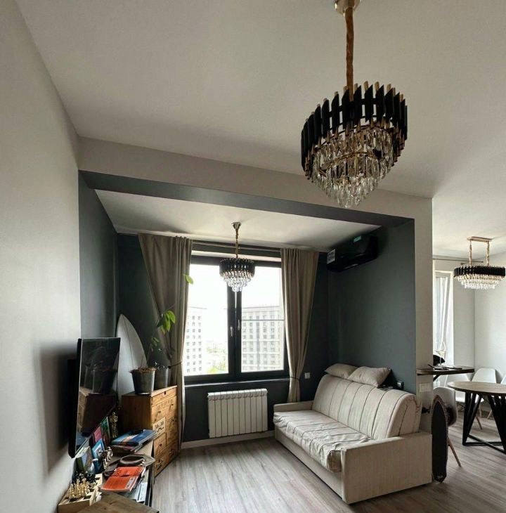 с дизайнерским ремонтом, полностью готова к проживанию. Установлена современная техника: кондиционер, холодильник, посудомоечная машина, телевизор и стиральная машина. В кухне и комнате имеется мебель. В ванной комнате установлена ванна.