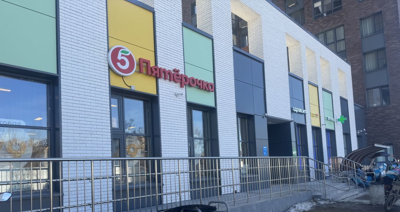На первых этажах дома расположены магазины, кафе, ozon, пятерочка.