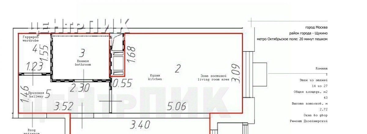 1-к кв. Москва ул. Берзарина, 32А (43.0 м²)