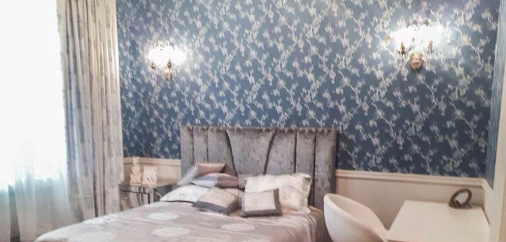 Екатерина.К аренде предлагается уникальная дизайнерская квартира в доме с потолками 4 м. Ремонт в стиле современная классика, дорогие эксклюзивные отделочные материалы, дизайнерское освещение, стеклянные прикроватные тумбочки в венецианком стиле, комната разделена на спальню и гардеробную.