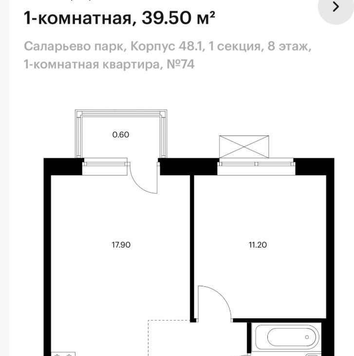 1-к кв. Москва ул. Большое Понизовье, 14 (39.5 м²)