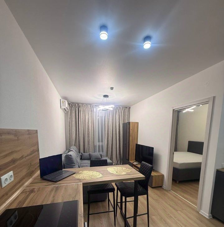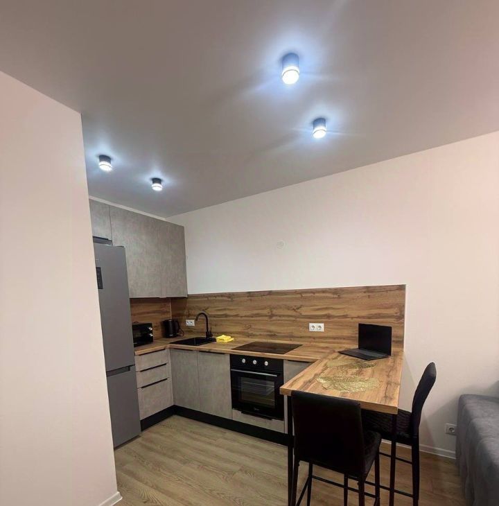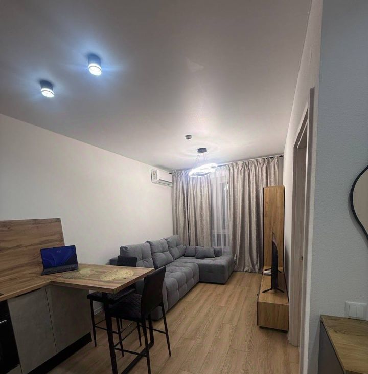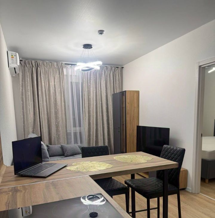 Квартира с евроремонтом, в котором учтены все современные требования к комфорту и стилю. В каждой комнате и на кухне есть необходимая мебель. Кухня оснащена всей необходимой техникой: холодильник, посудомоечная машина, СВЧ, чайник, телевизор. В квартире также есть кондиционер и стиральная машина.