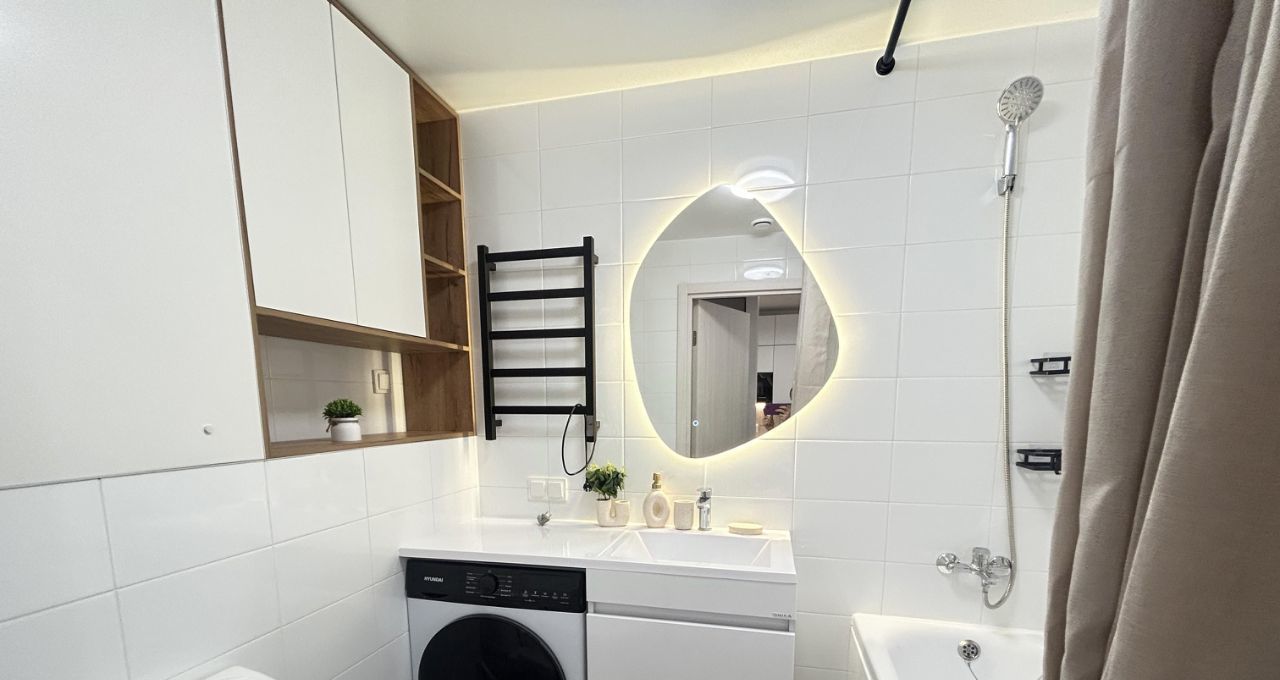 Сдается шикарная однокомнатная квартира с дизайнерским ремонтом в новом доме 2024 года постройки. Общая площадь квартиры — 32 кв. м, из которых 12 кв. м — жилая зона и 15 кв. м — просторная кухня. Высокий 20-й этаж из 22 обеспечивает отличный вид из окон, которые выходят как на улицу, так и во двор.