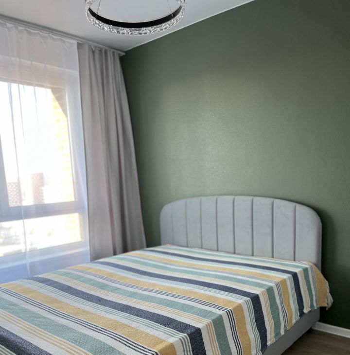 Квартира с хорошим ремонтом, полностью готова для комфортного проживания. В комнате и на кухне есть вся необходимая мебель. На кухне установлены холодильник и посудомоечная машина, в ванной комнате — стиральная машина и ванна. Окна выходят во двор, поэтому вы будете наслаждаться тишиной и уютом.