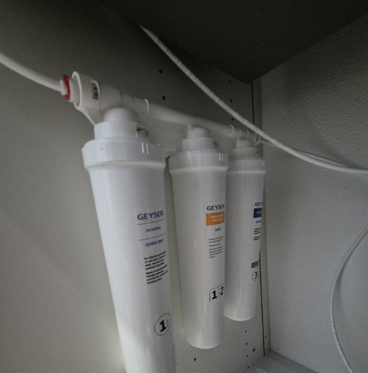 -новый фильтр под раковиной вода сразу питьевая отфильтрованная,
