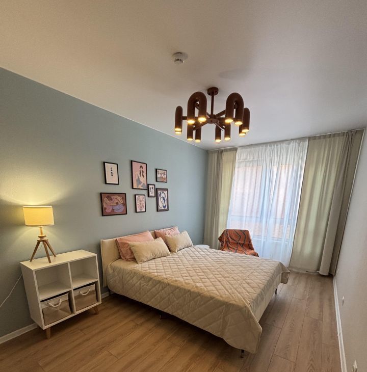В квартире есть не только вся необходимая мебель и техника (вместительная гардеробная, кровать 160 на 200 с ортопедическим матрасом, смарт тв, колонка с Алисой, пылесос, посудомоечная машина и т.д.), но приятные мелочи облегчающие переезд (посуда, столовые приборы, постельные принадлежности).