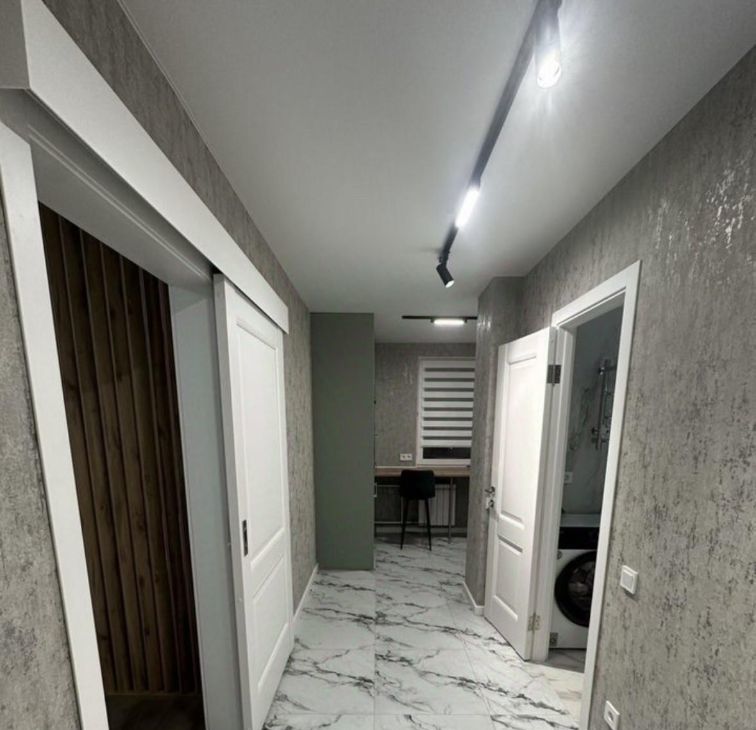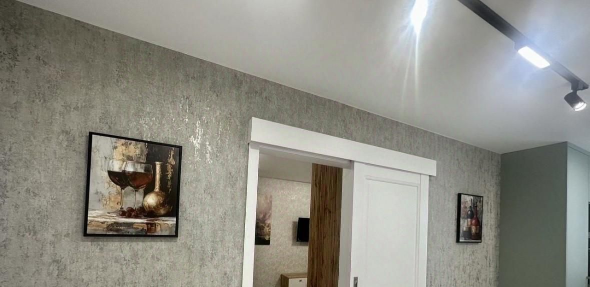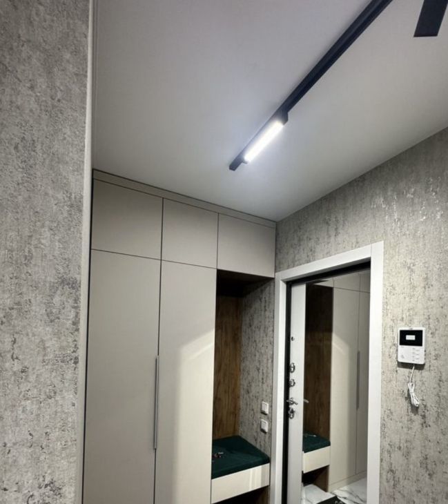 Выполнено световое решение по всей квартире (трековая система, выключить основной свет в комнате можно лежа на кровати, не обязательно вставить), мастер- выключатель, домофон с камерой.