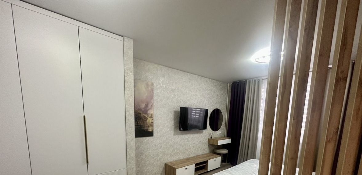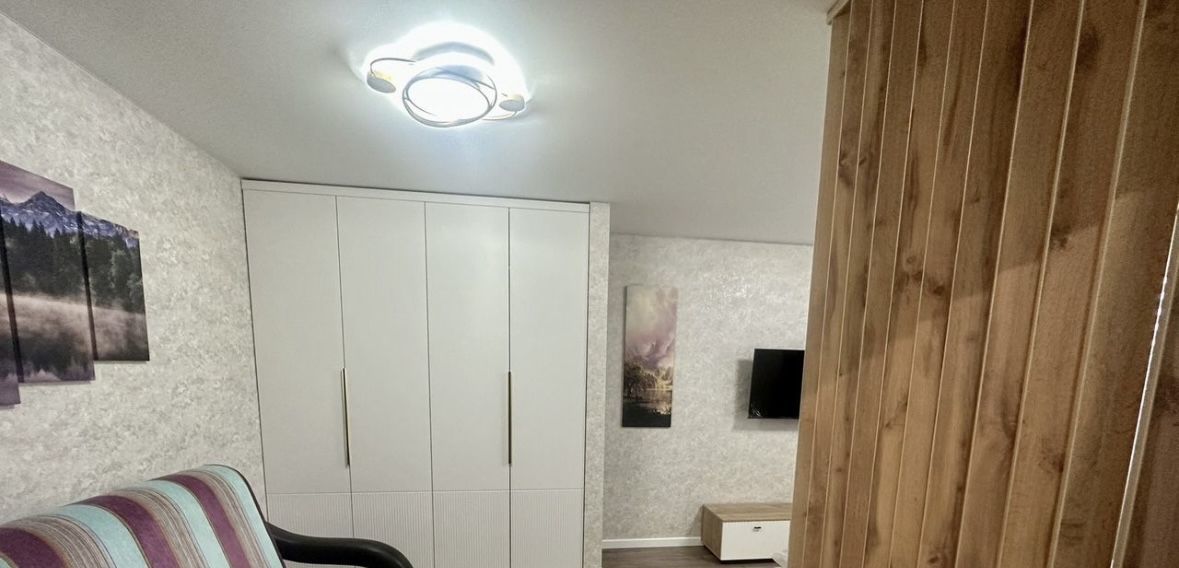 В комнате: кровать 160*200 с ортопедическим матрасом, раскладной диван, зона тв, функциональный шкаф, кондиционер.
