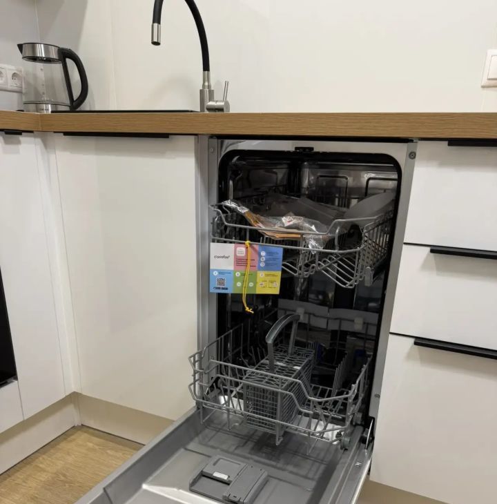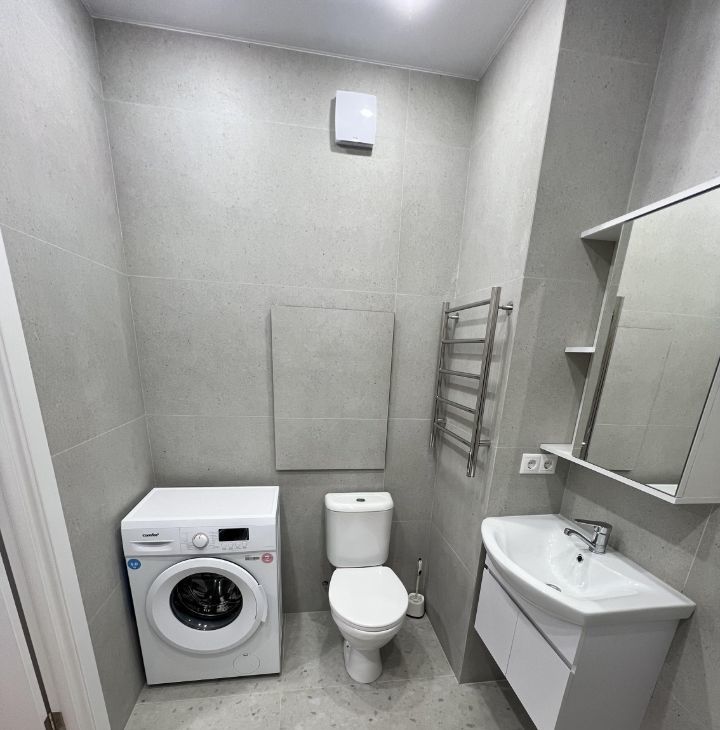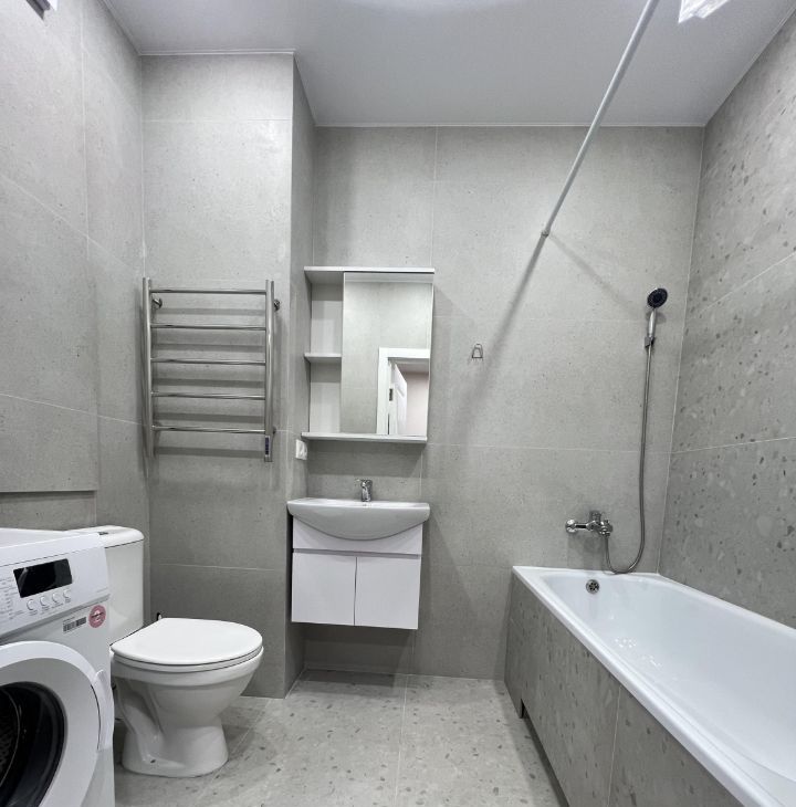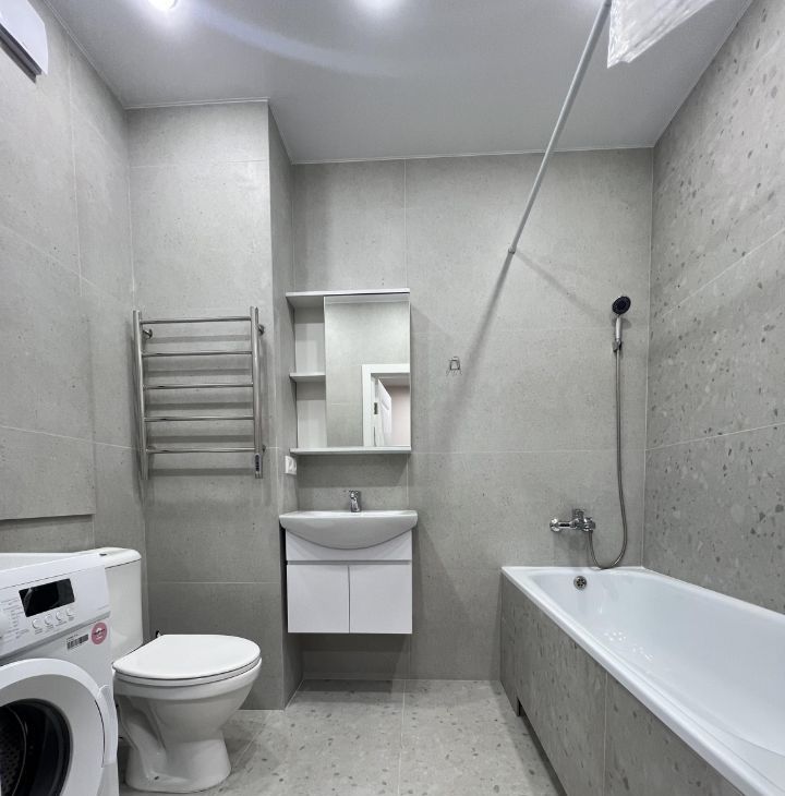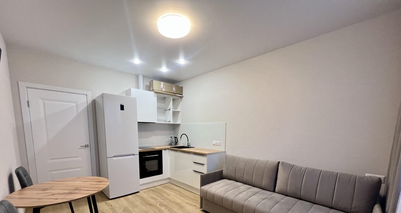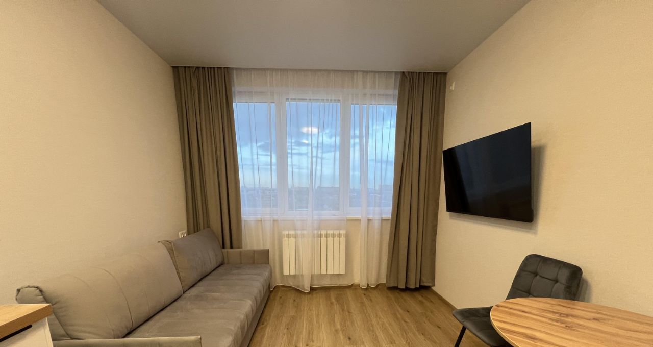 Квартира полностью готова к проживанию: в комнате и на кухне есть вся необходимая мебель. На кухне установлена современная техника — холодильник, посудомоечная машина. В комнате вас ждет телевизор для уютных вечеров. Ванная комната оборудована ванной и стиральной машиной. В квартире проведен интернет, поэтому можно всегда оставаться на связи.